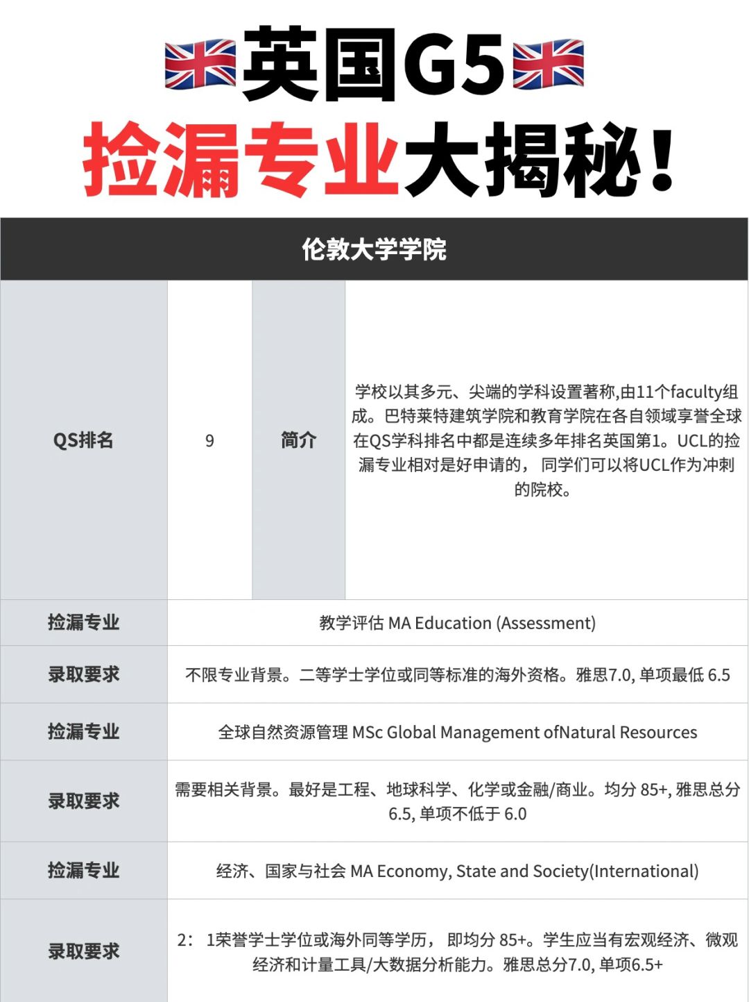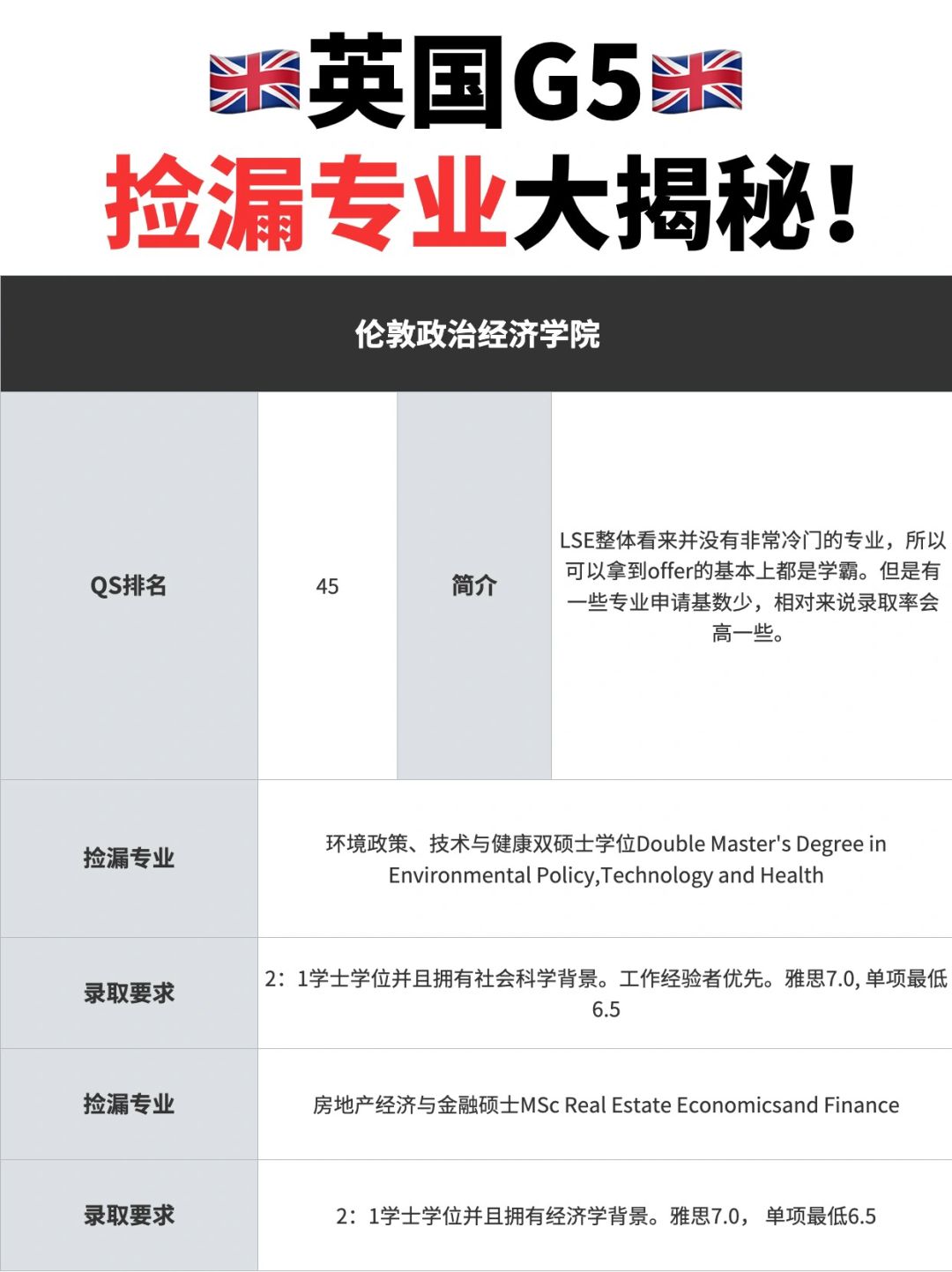 👏今天,我就为大家汇总了一些比较容易申请的专业,让大家都能快乐“捡漏”,圆了自己的 G5 梦!
