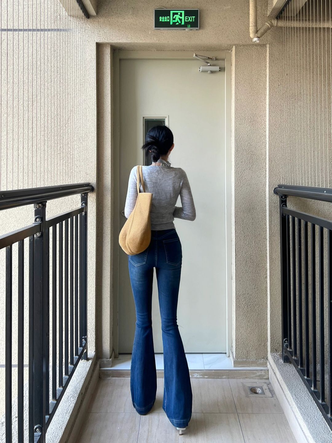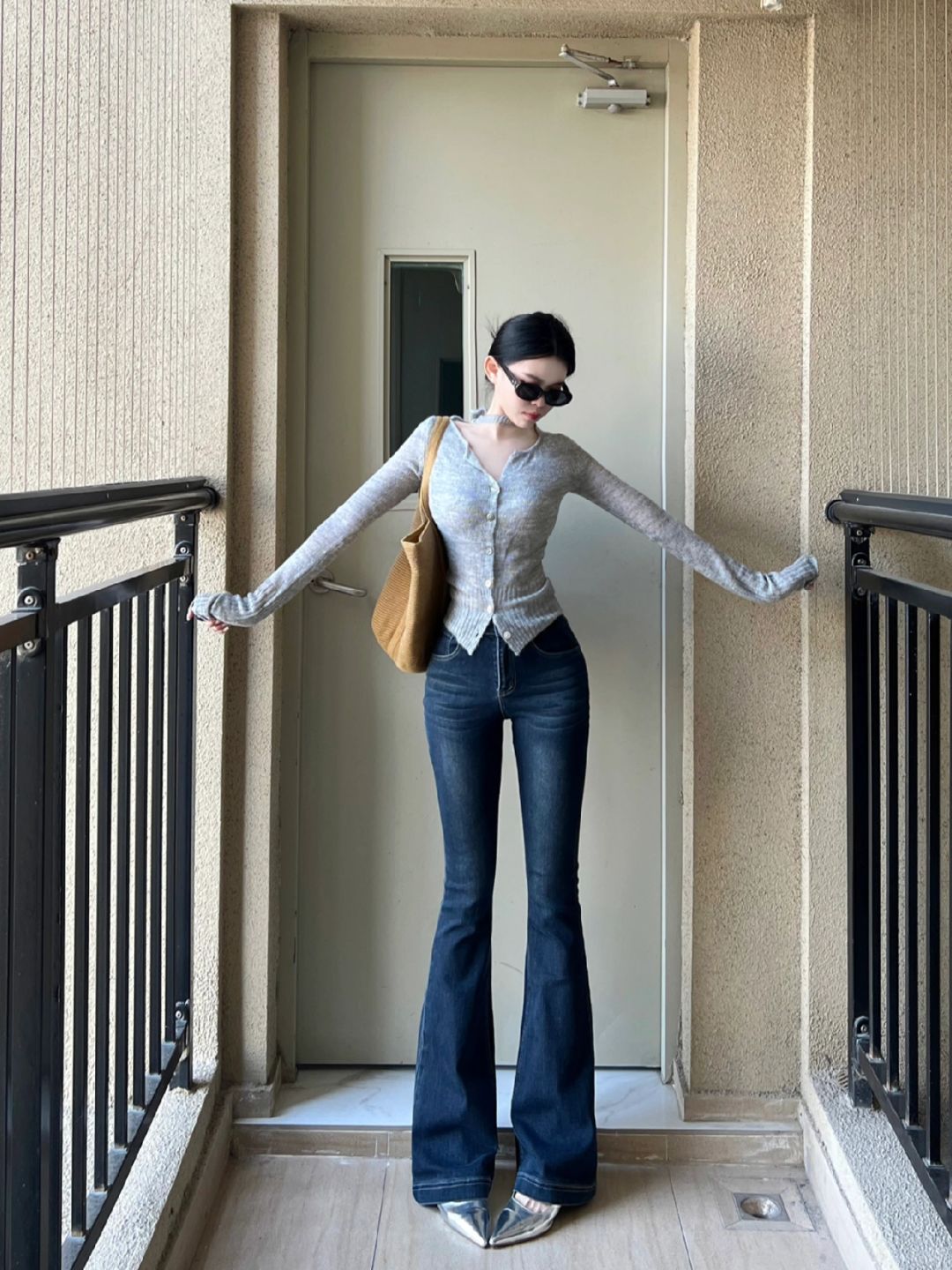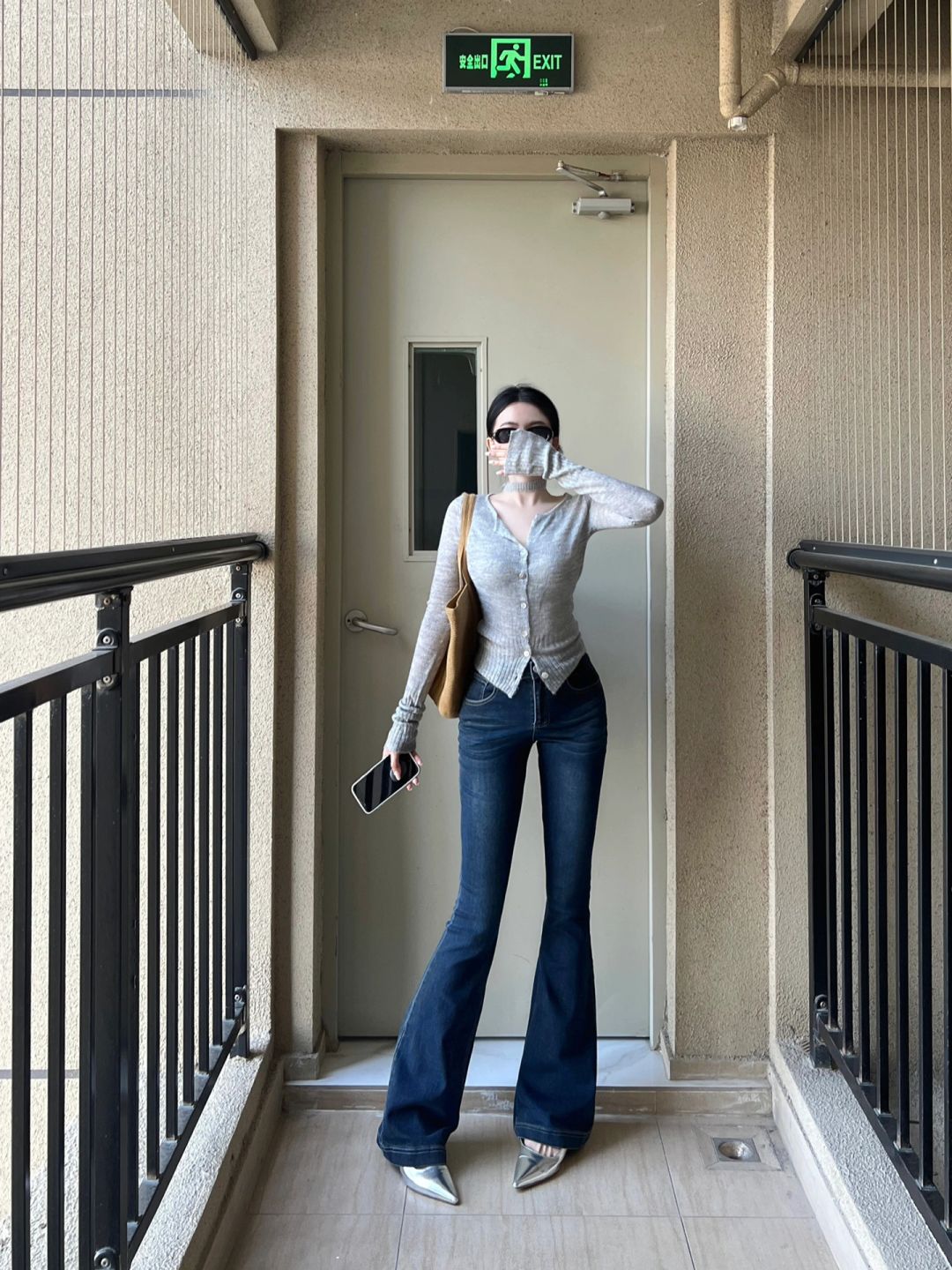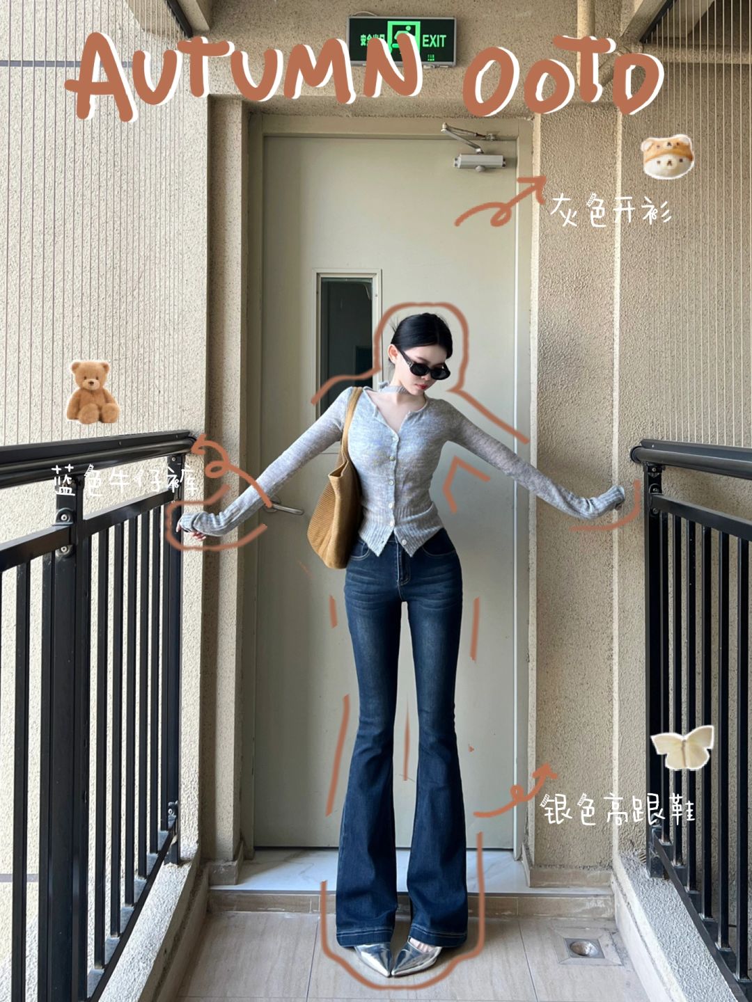 想记录下此刻 这个模板有点东西 显瘦牛仔裤 毛衣搭配 针织开衫 喇叭裤 大衣内搭 浅浅的期待一下秋冬 一周穿搭不重样 显身材穿搭