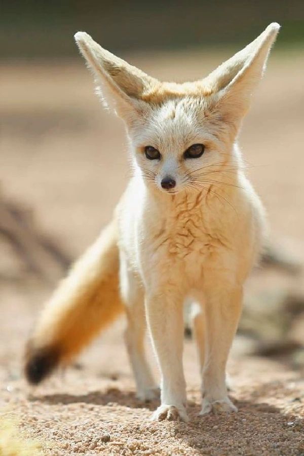 🍀形态特征:耳廓狐是食肉目犬科狐属的哺乳动物,别名大耳小狐,是世界上体型最小的狐狸。耳廓狐体长35-45厘米,体重约1千克。耳廓呈三角形,耳内侧为纯白色,外侧为浅黄色;眼大,眼前部有一块清晰的褐色斑纹;体毛近乎白色,略带浅黄色,毛长而蓬松、柔软,背中线为肉桂褐色,腹部及四肢内侧为白色;尾毛厚密,为赤褐色,近尾基部有一块黑斑,尾尖呈黑褐色。