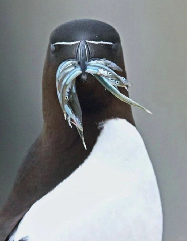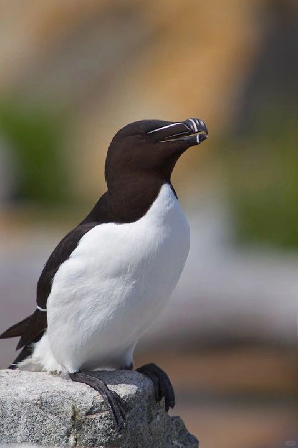 🍀形态特征:刀嘴海雀体长37-39厘米,翼展63-68厘米,体重500-750克,寿命20年。是一种潜水海鸟,与海鸠有近亲关系,躯体部伸长,与颈部分界不清晰,两翼短而紧贴于躯干部,足接近尾部,通常具三趾,行走乍看颇像企鹅,在北大西洋北部也被称为小企鹅。