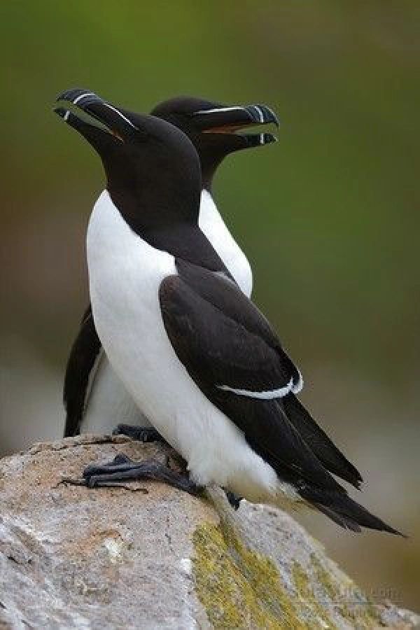 🍀生活习性:刀嘴海雀天性喜爱群居。它们大量聚集在岛屿岩岸的峭壁和石峰上,共同安家立业,互相距离很近,嘴一伸就可啄到邻居。春天,大群地聚集在繁育基地。雌海雀在岩石缝隙或光滑的岩架上产一至两个卵。海雀夫妇照顾小海雀几个月,然后就返回海里过冬。