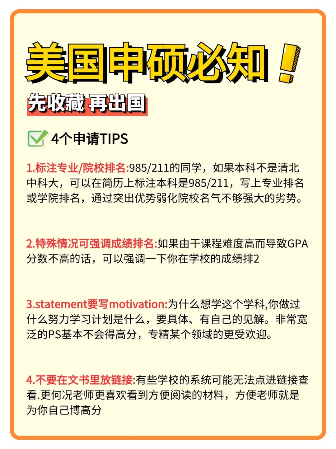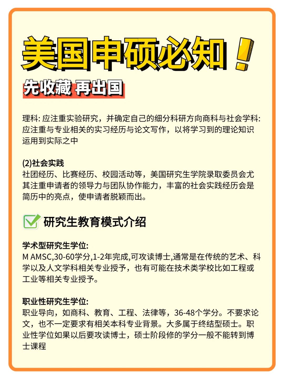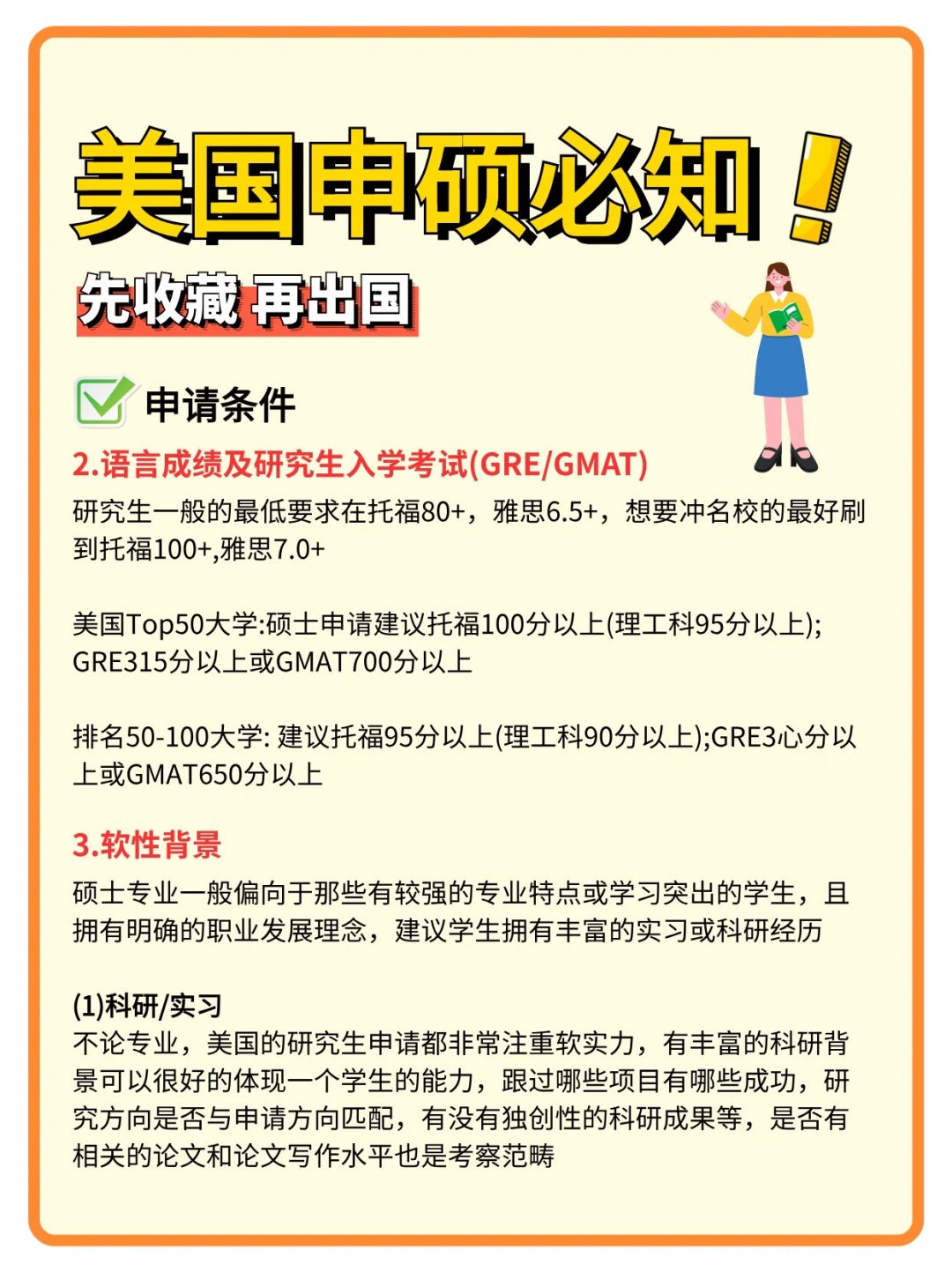 🈸美国研究生前,我知道这些该多好! 🌟听劝!申请美国研究生,看这篇就够了! 👇👇👇 ✨美国研究生留学费用(图1) ✨美国研究生申请条件(图1-3) ✨研究生教育模式介绍(图3) ✨美国申硕材料(图4) ✨4个有效申硕tips(图5) ✨美国申硕全流程(图6-7) ———————— 想拿24fall美国研究生的宝子可以后台踢我哦~💕