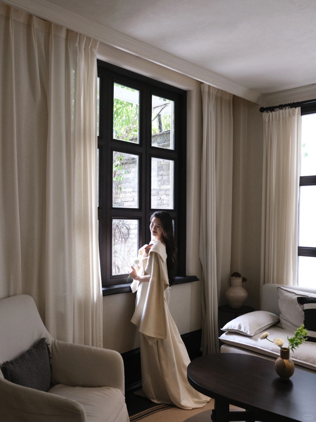 白衫是薄瓷的容器盛着心跳与呼吸绿裤是柔韧的藤缠裹着骨骼的倔强~柳丝拂