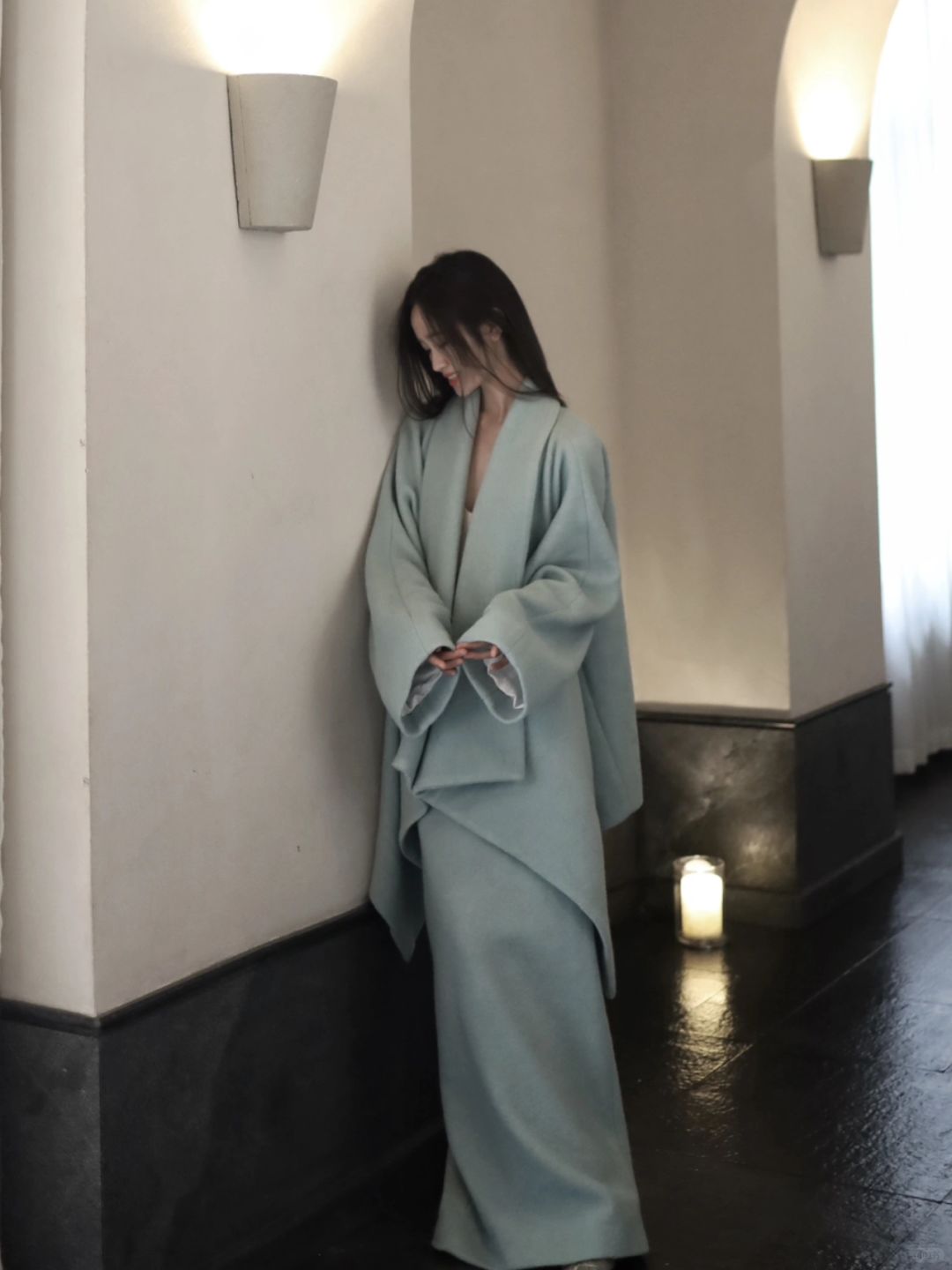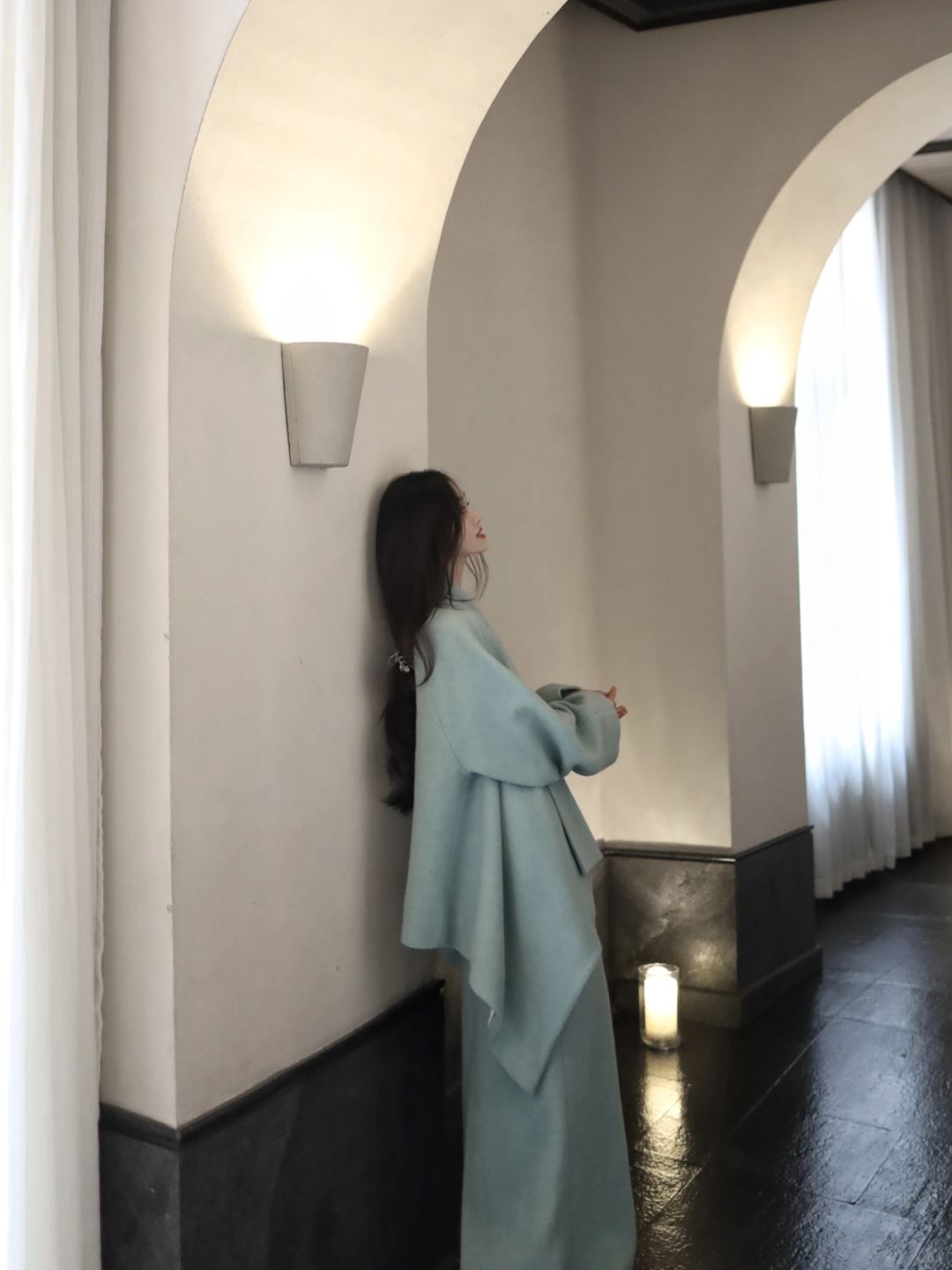 白衫是薄瓷的容器盛着心跳与呼吸绿裤是柔韧的藤缠裹着骨骼的倔强~柳丝拂