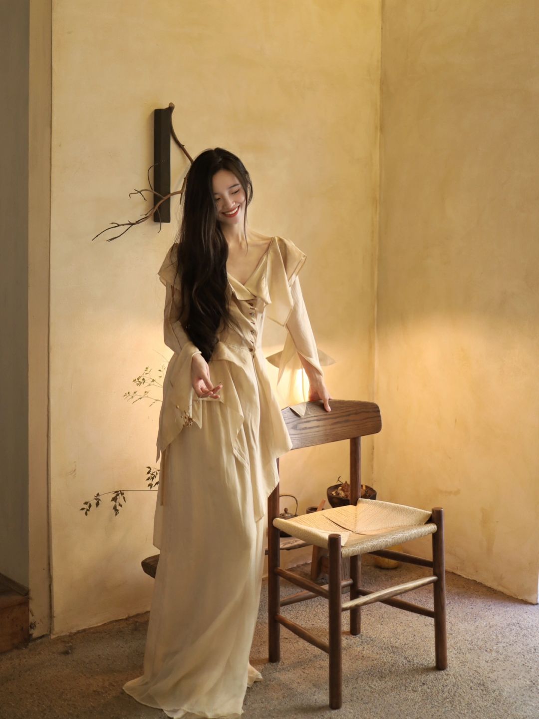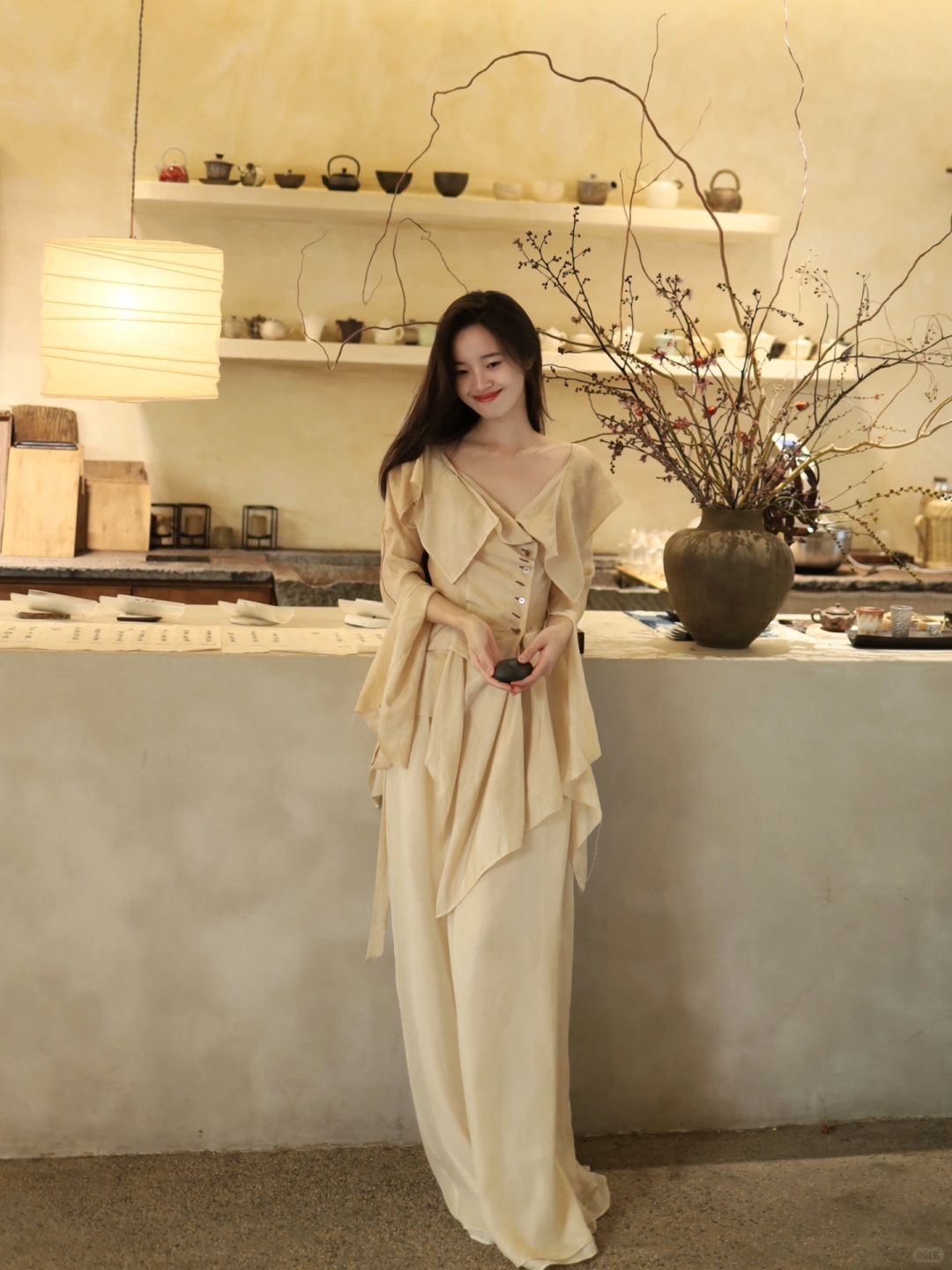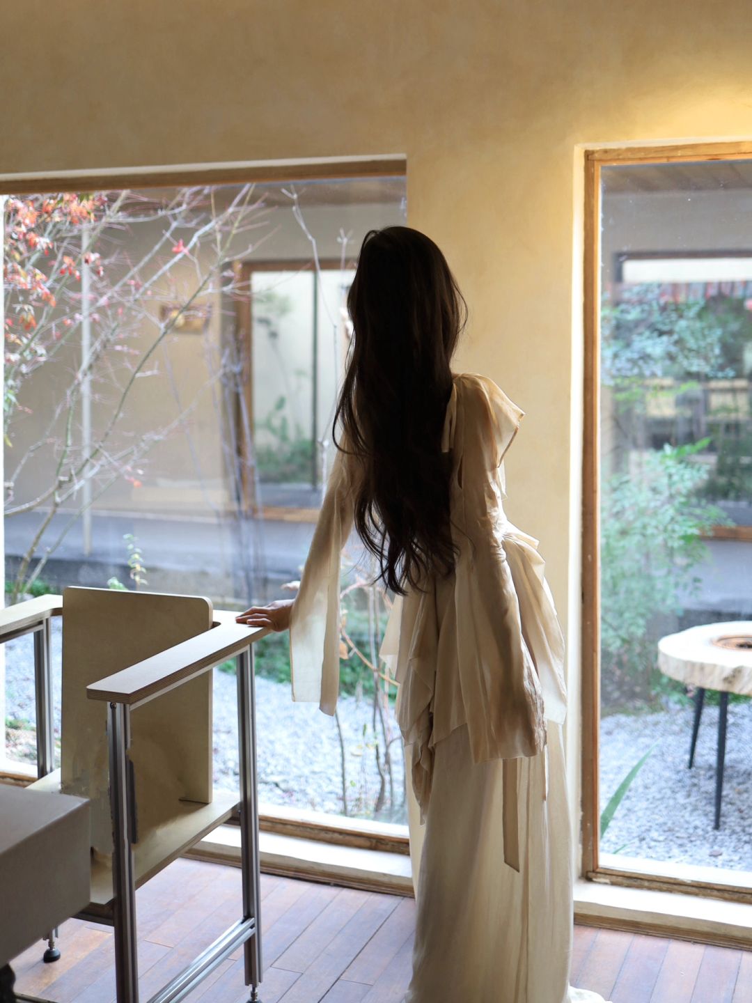 白衫是薄瓷的容器盛着心跳与呼吸绿裤是柔韧的藤缠裹着骨骼的倔强~柳丝拂