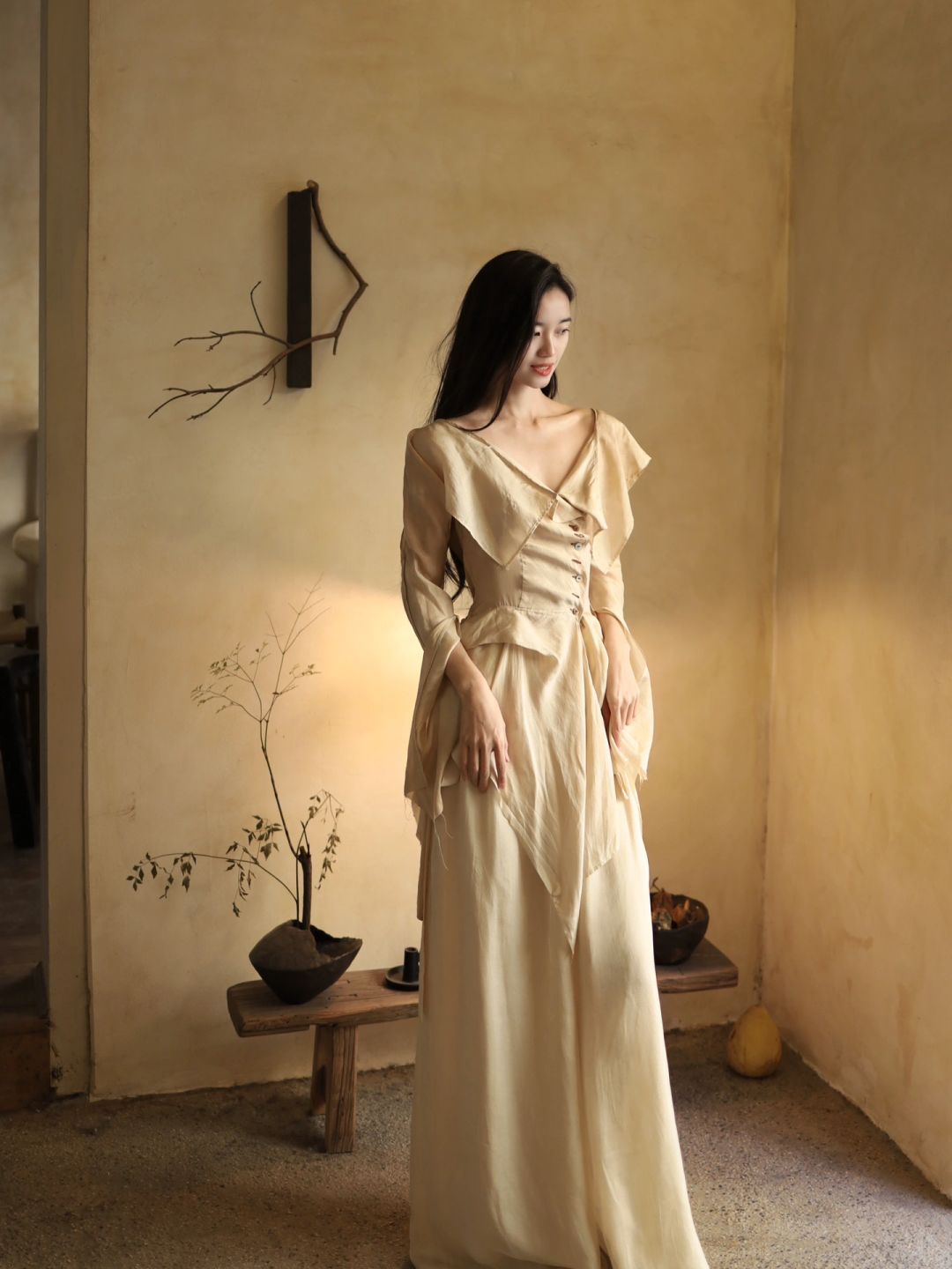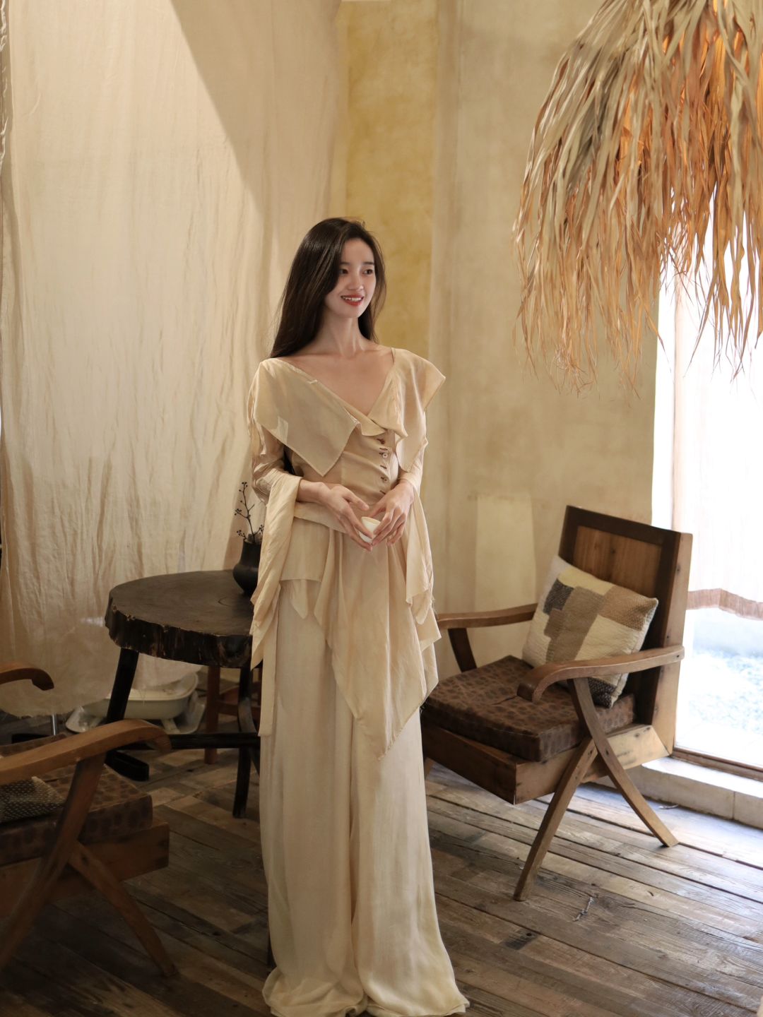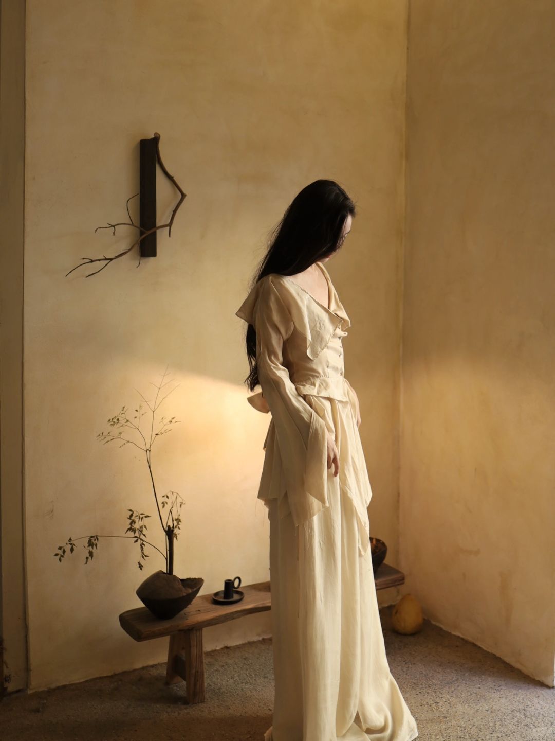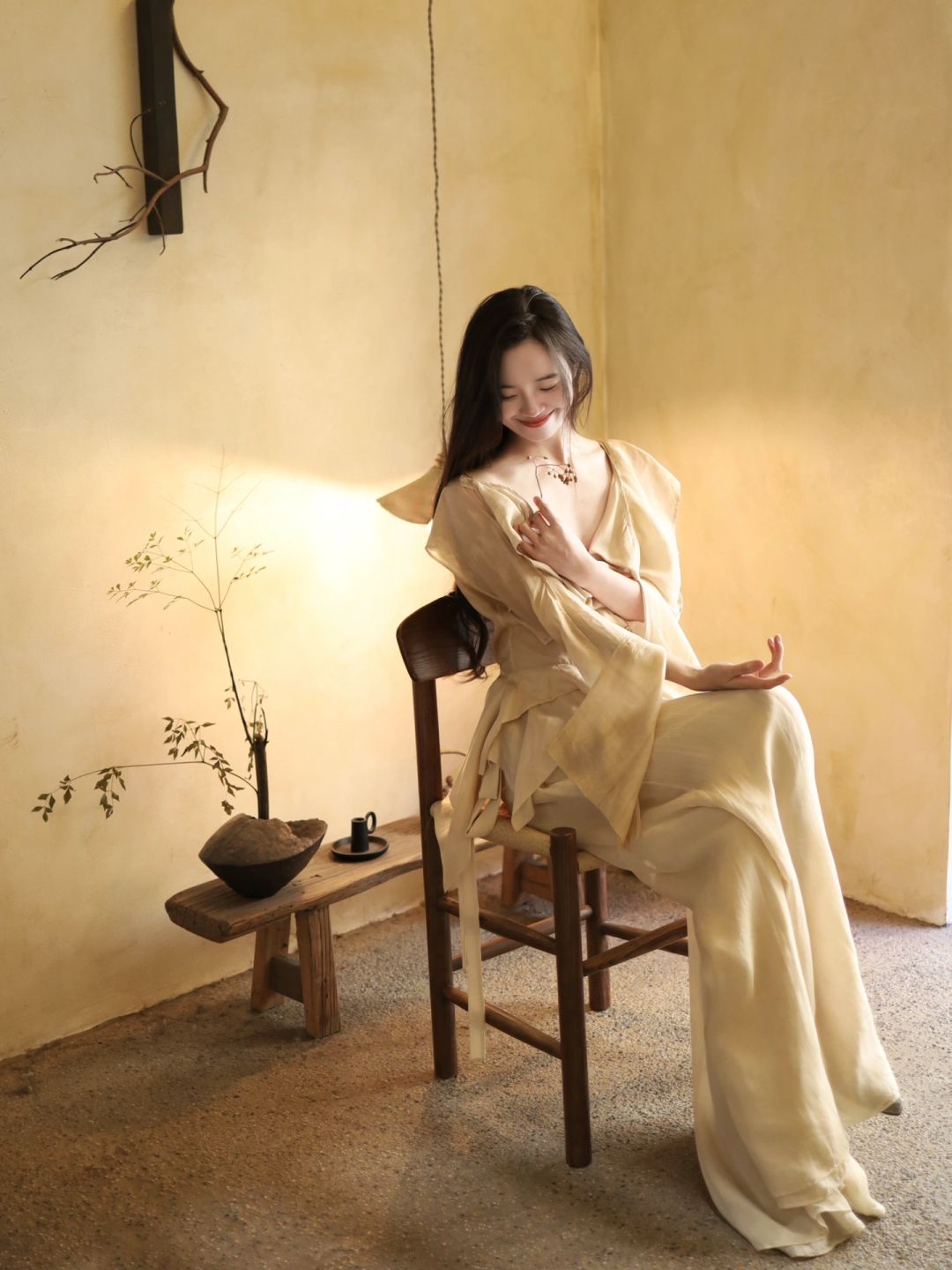 白衫是薄瓷的容器盛着心跳与呼吸绿裤是柔韧的藤缠裹着骨骼的倔强~柳丝拂