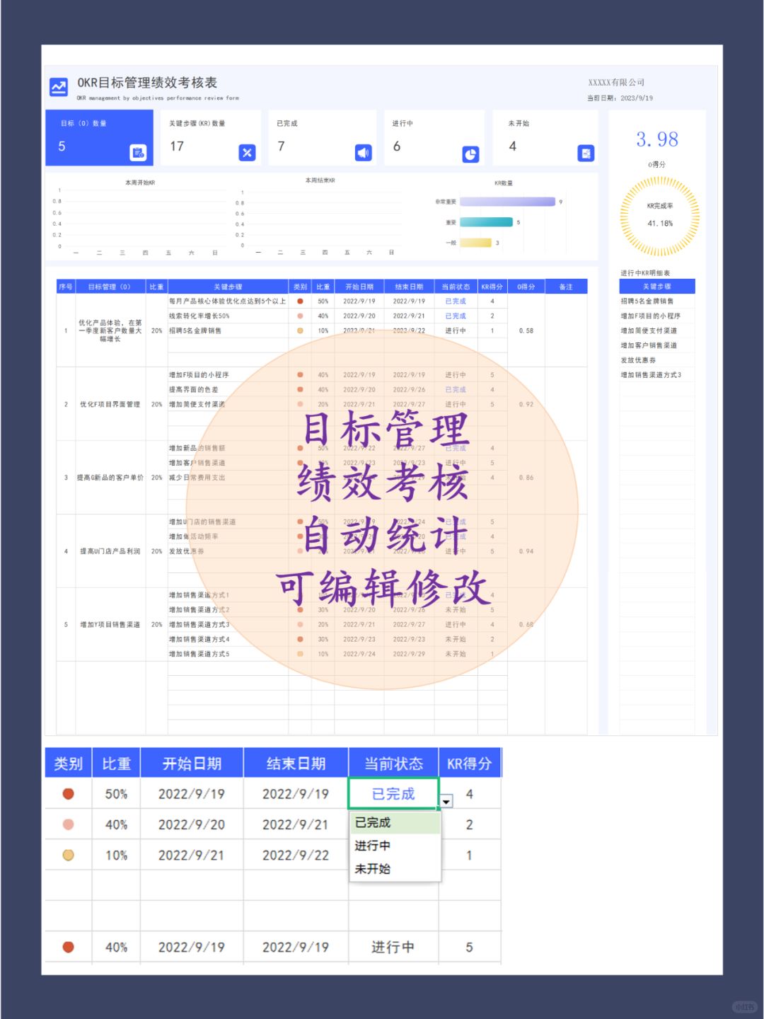 OKR(Objectives and Key Results)是一种绩效管理方法,它将企业的目标和关键结果分解成若干个具体、可衡量的目标,并跟踪它们的进展。