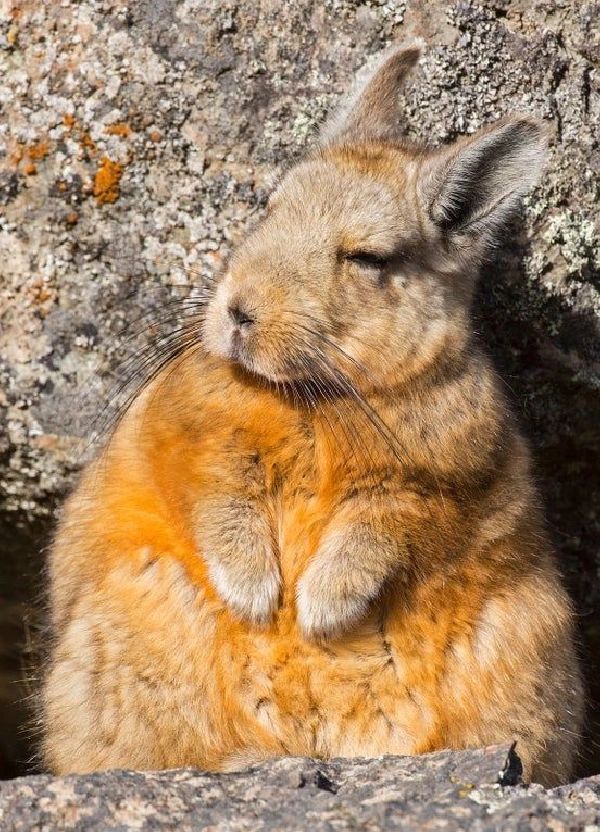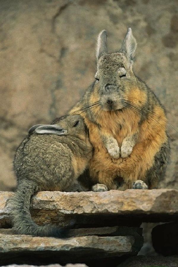 🍀作为群居动物,山绒鼠群是母系社会的群居动物,一群是一个大家庭,大概有数只到十几只,由年长的雌性带领,大家会通过叫声交流。它们领地意识很强,因数量急剧下降被列为濒危动物,好在近些年数量有所回升。山绒鼠生活在南美的高原岩石区,因为海拔高的地方气温低,所以他们需要通过晒太阳取暖。没事的时候山绒鼠就拖家带口站在岩石区上沐浴阳光,用于进食的时间反而在一天中占比比较少。