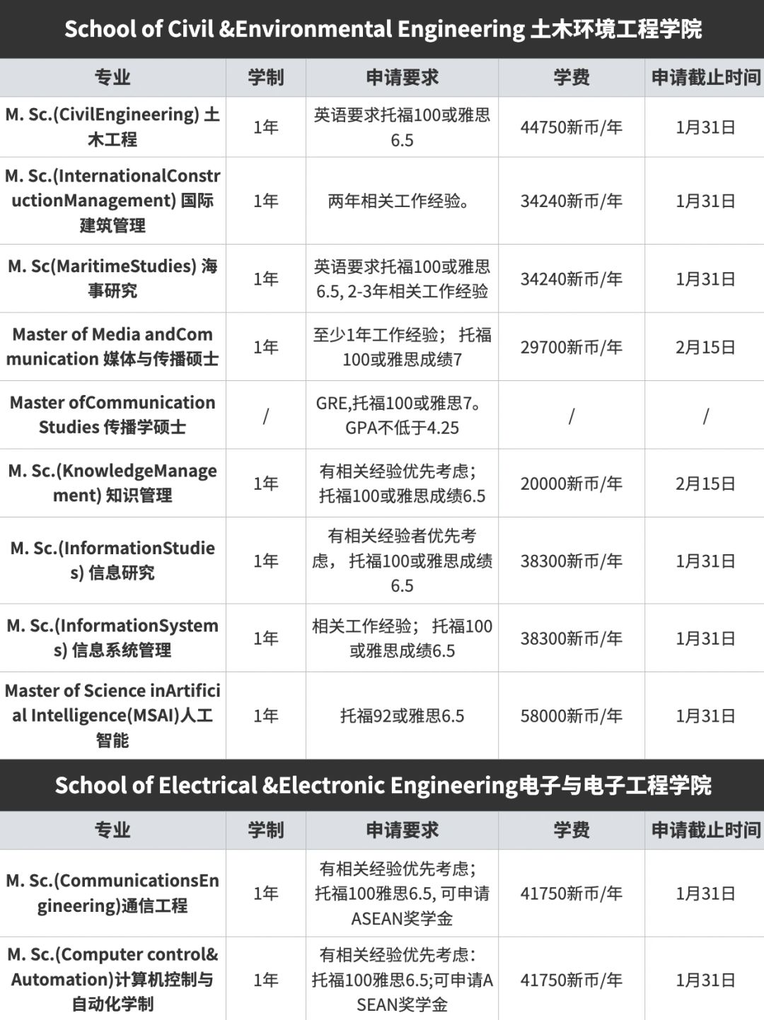 想了解南洋理工大学各专业申请截止时间,打2⃣