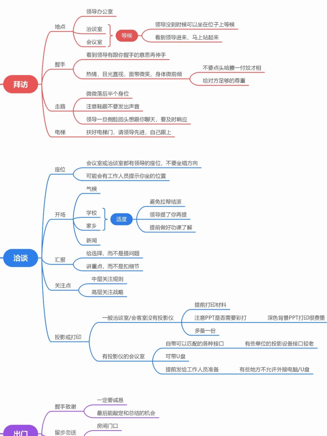 🔸走路。跟随在领导后半步,领导想回头跟你寒暄时,要快步跟上。领导没开口,别尬聊。