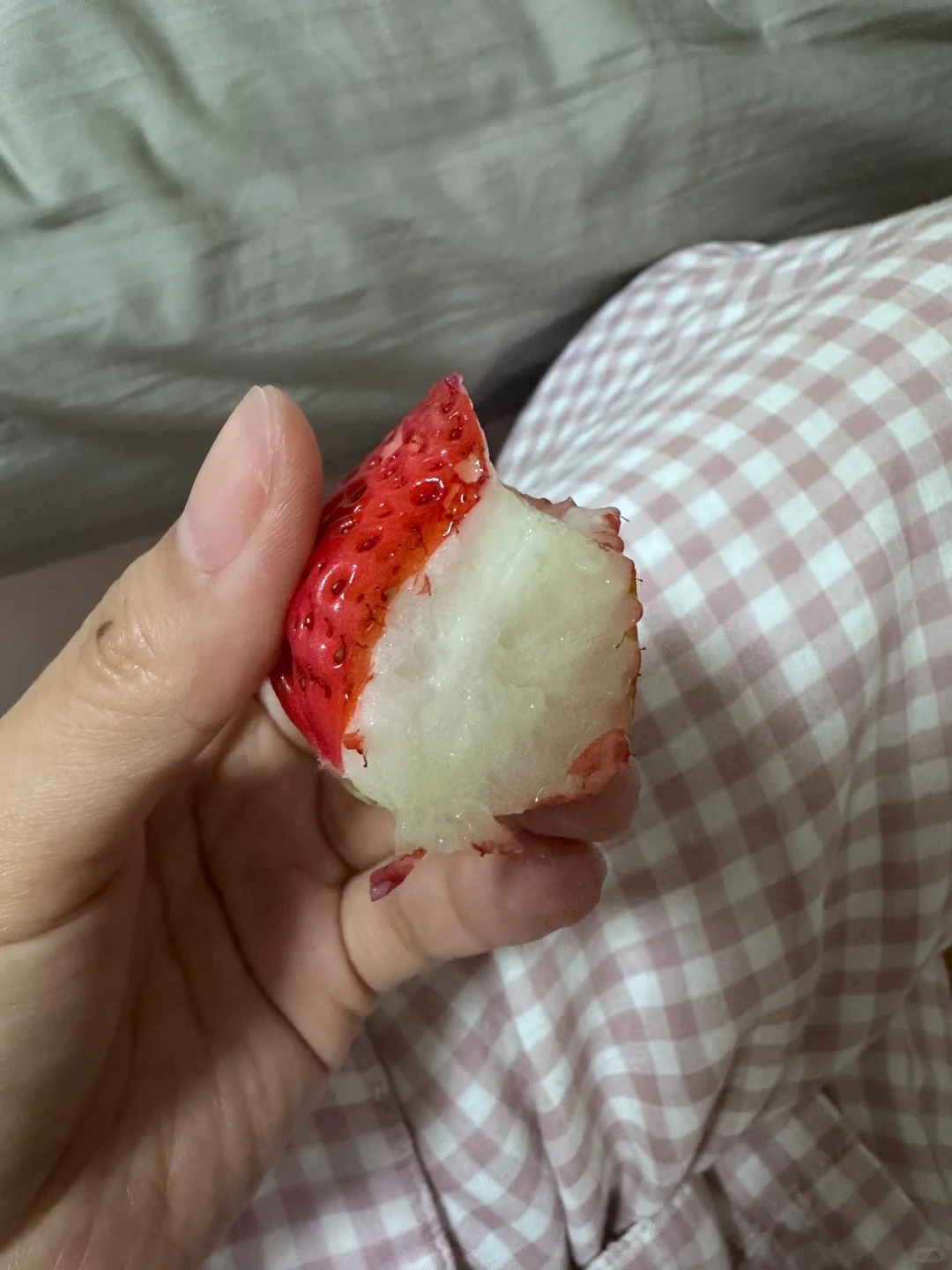 草莓外面的颜色是涂上的吗 味道没什么特别 可是..这颜色反差是正常的吗