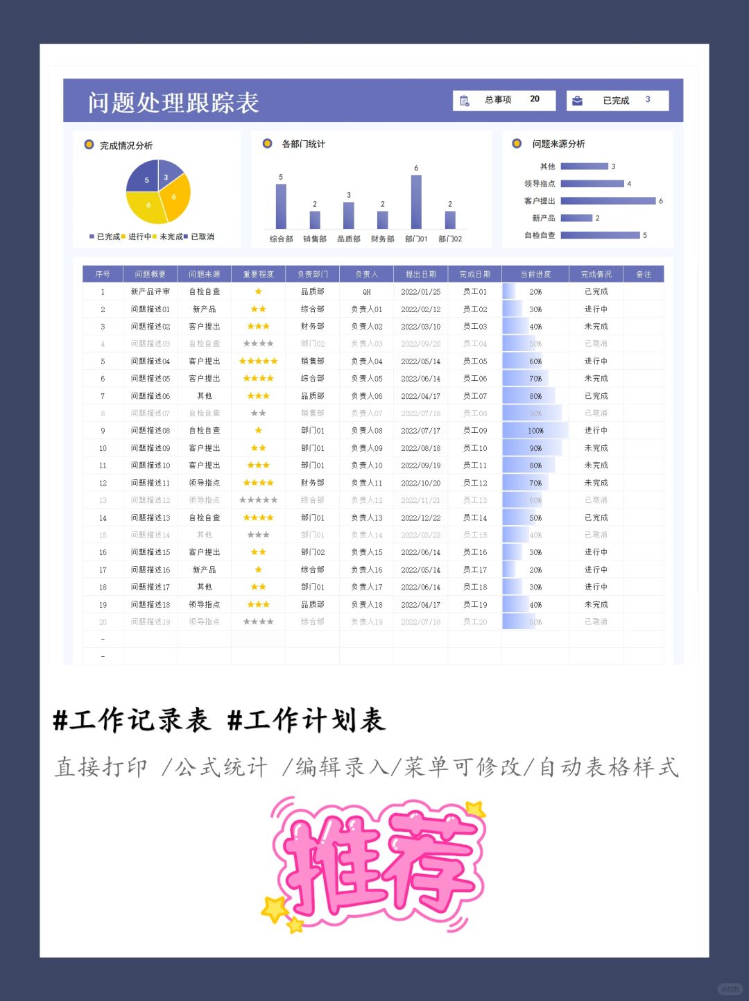 问题解决跟踪管理表我要安利给所有项目经理