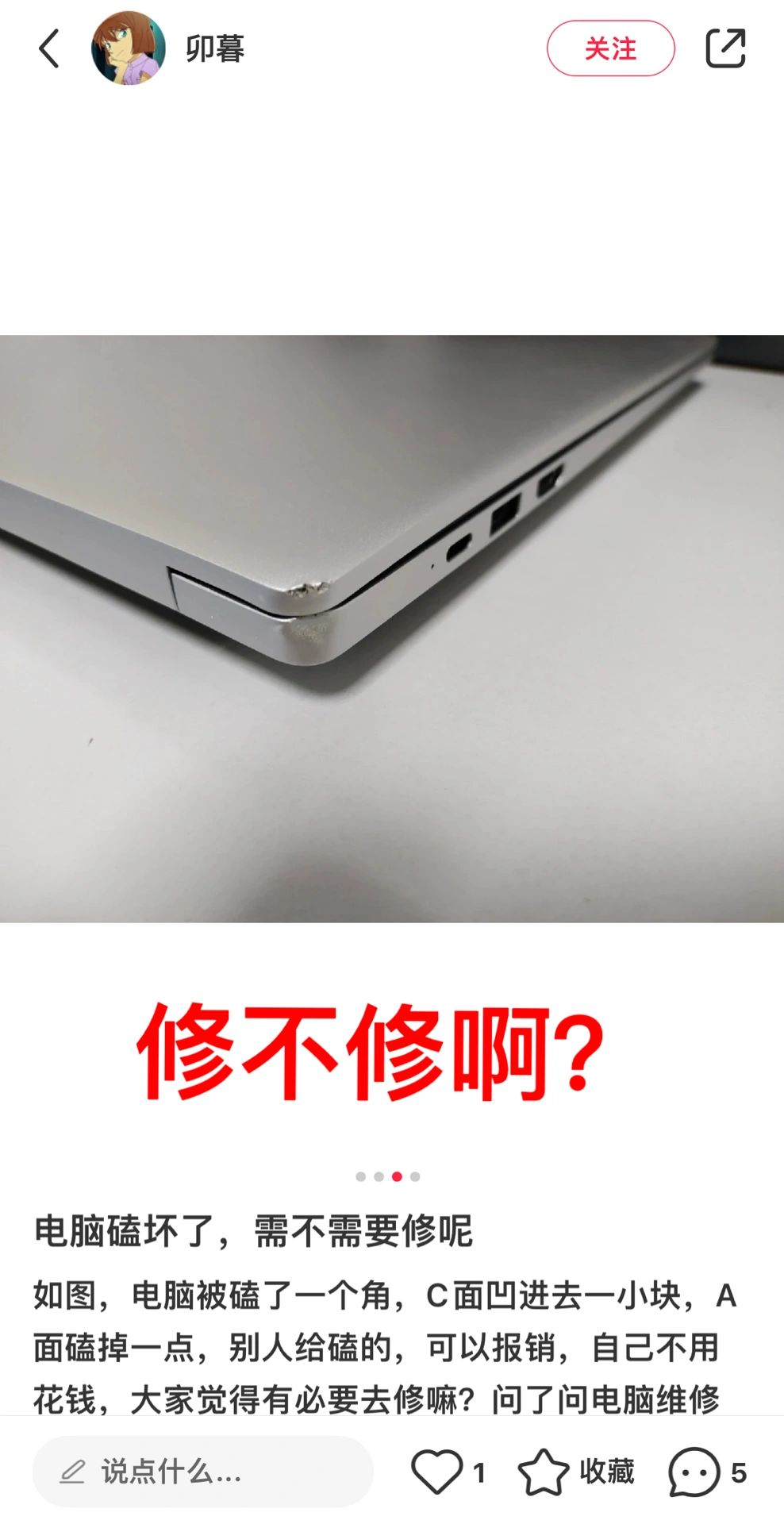 3.值不值得修,如果在不影响使用的前提下,仅仅是外观的磕碰,不严重的话,不修也是可以的,毕竟有些电脑总价值4000,一个磕碰维修价格高达800块,确实有点贵了,可以买个膜遮挡一下