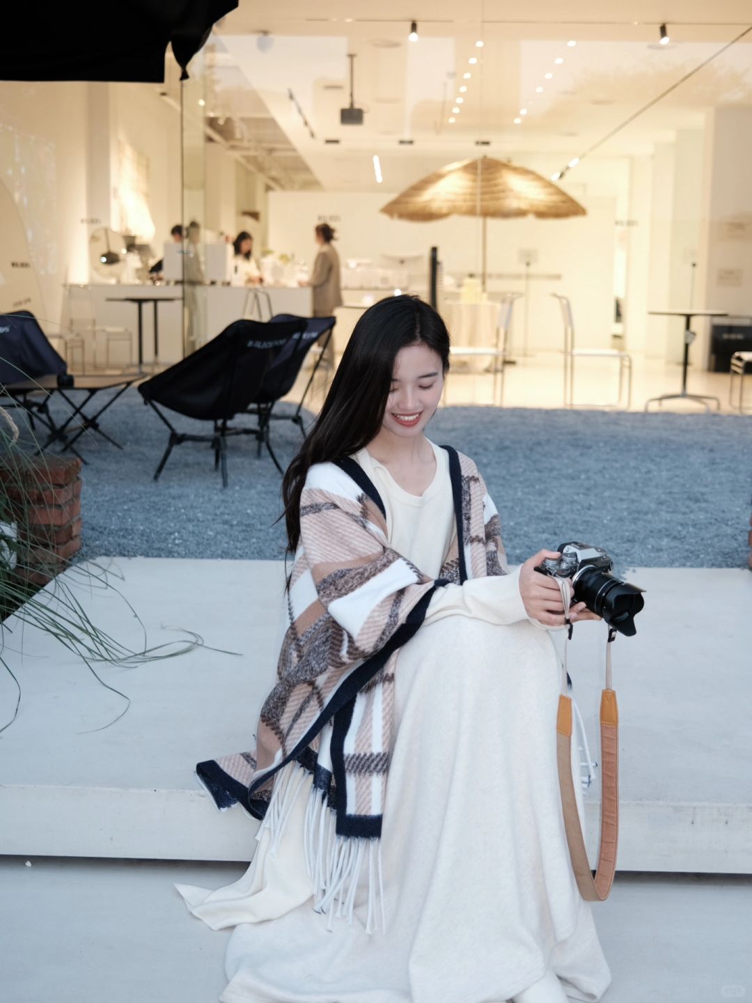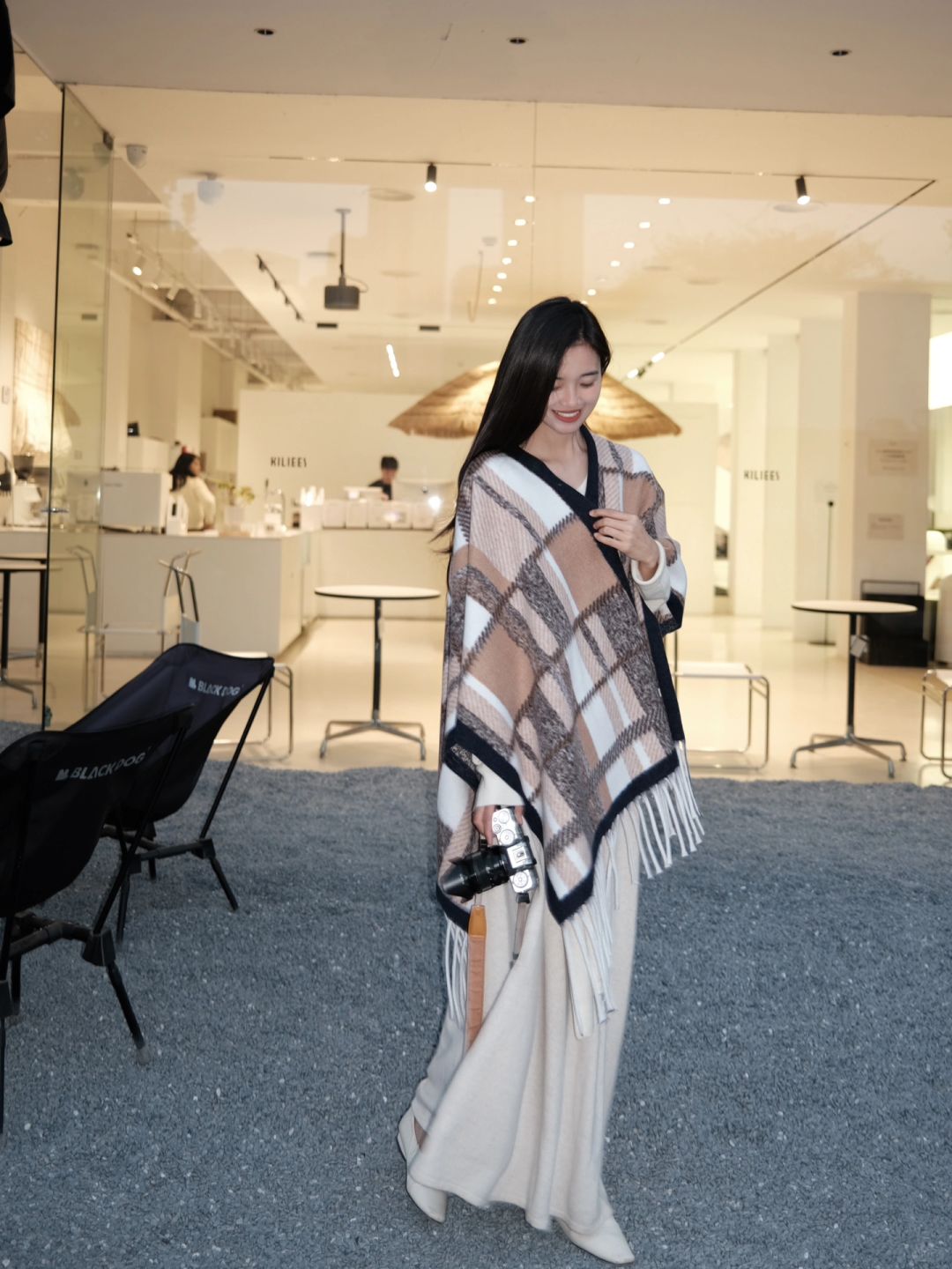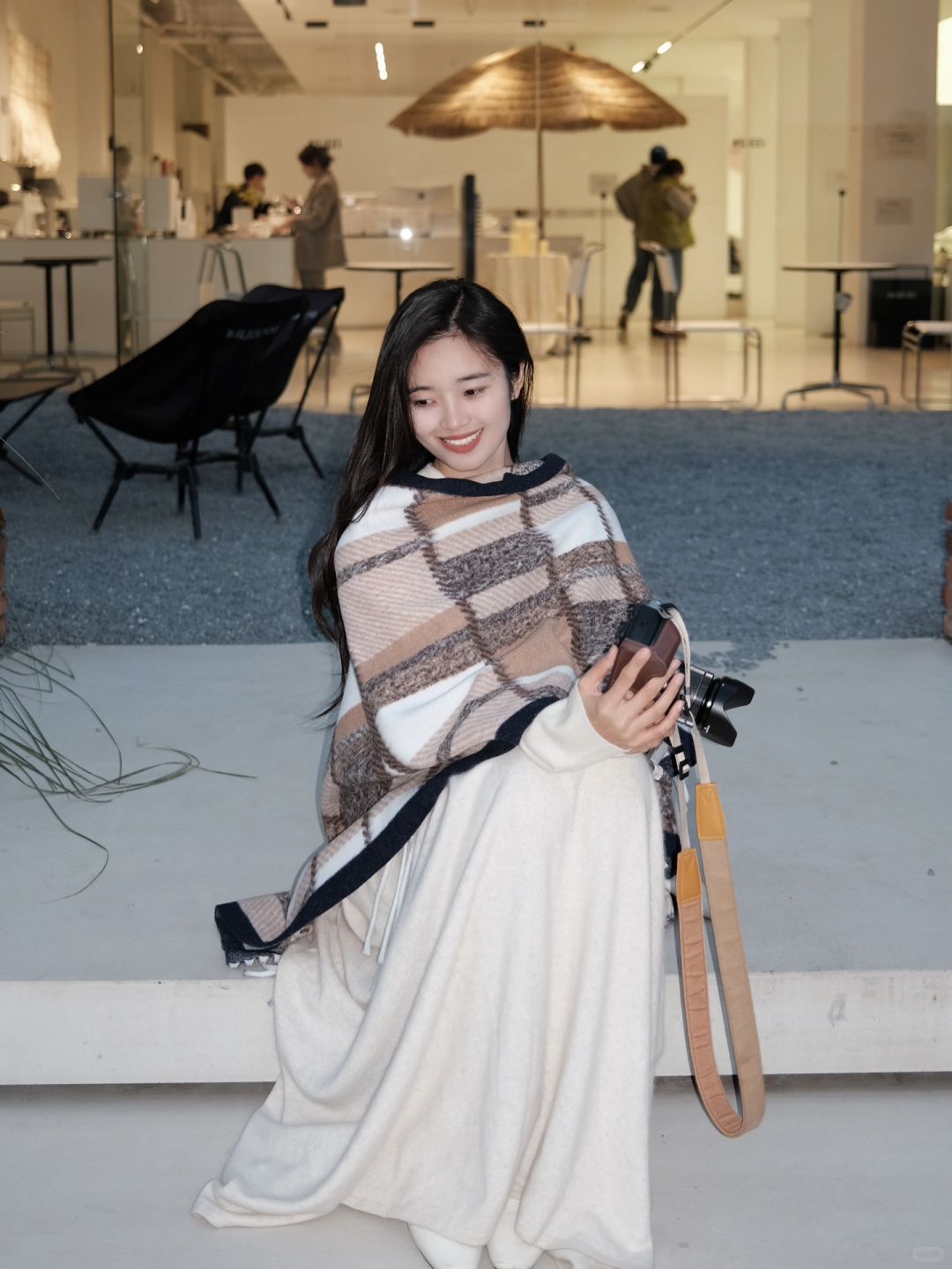 前几天大家都问的半裙 当时配的大衣和高领毛衣 其实单穿或者配个披肩也好看的~