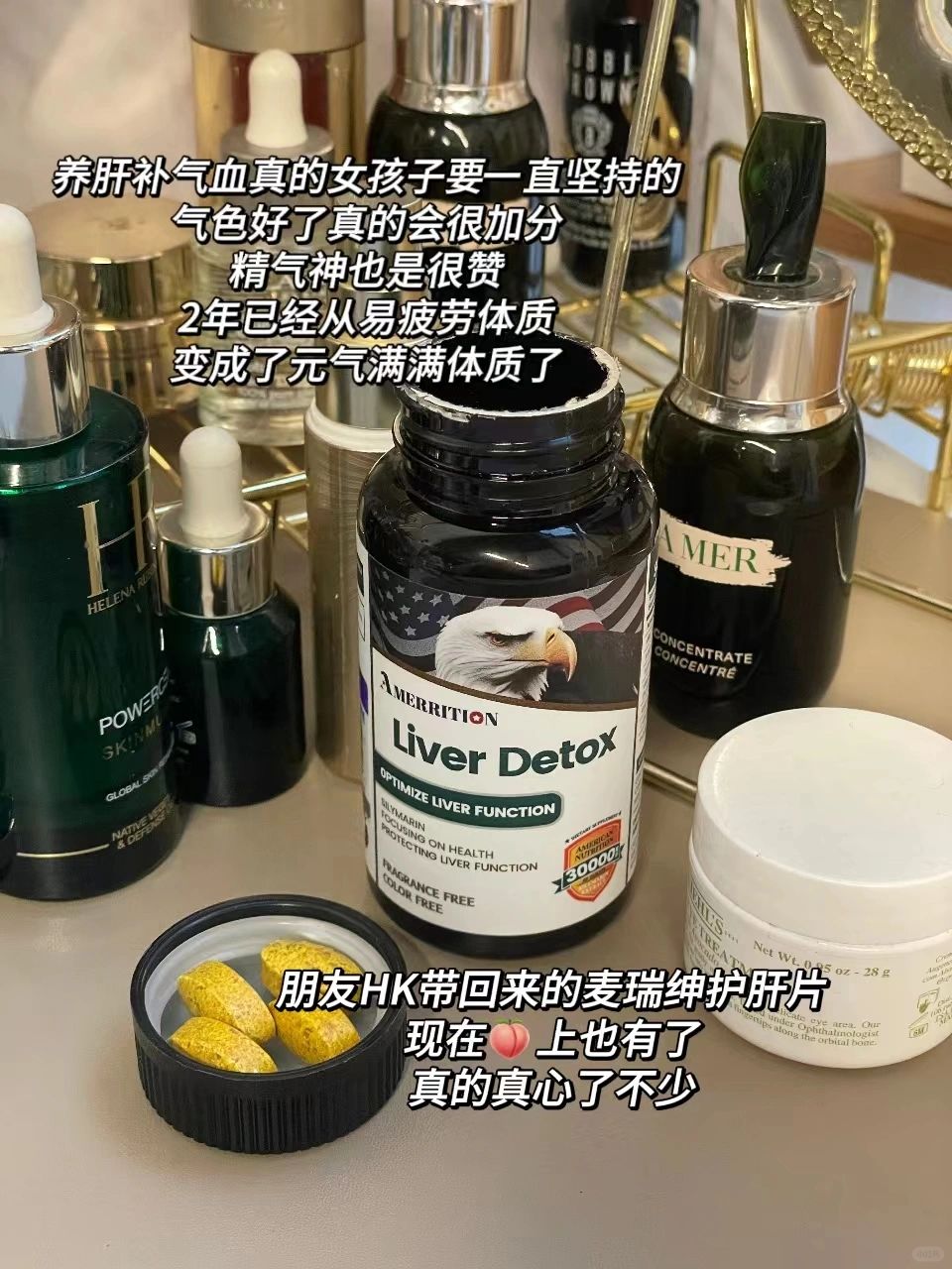 😘保养上:除了中医食补之外,还会坚持吃麦瑞绅护肝片,也算是中西结合了!每天饭后吃一片也不会耽误时间,成分很干净,500mg水飞蓟宾、姜黄、谷胱甘肽VE就是的大部分构成了,还是当时托朋友从HK带回来的,现在也算是可以内地直接采购了也算方便~