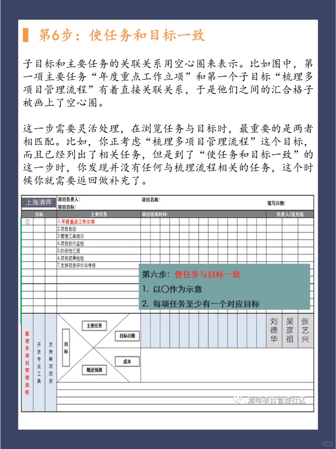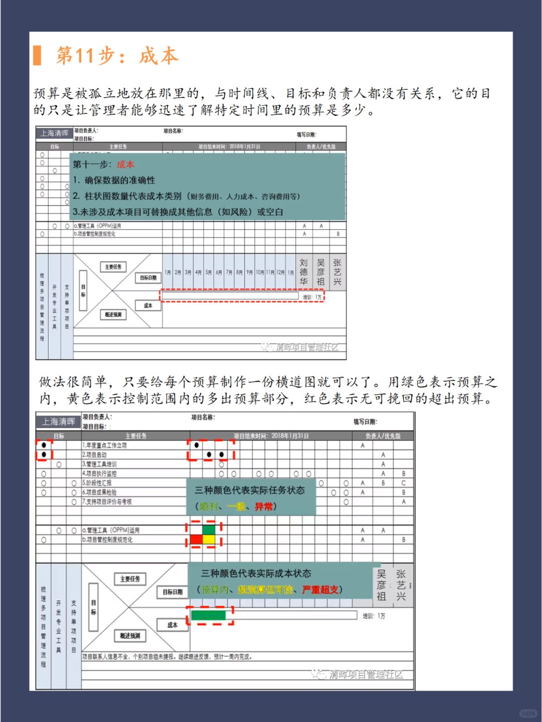 通过是否可以实现目标筛选出关键任务,任务确定后,在一页纸上面设置时间线,展示成本和负责人。
