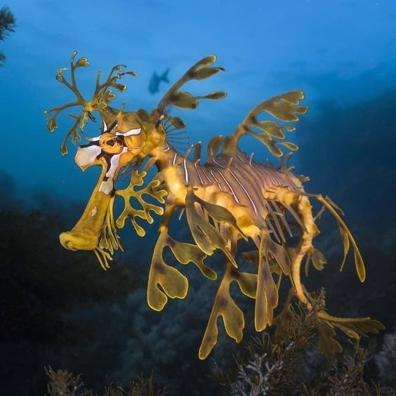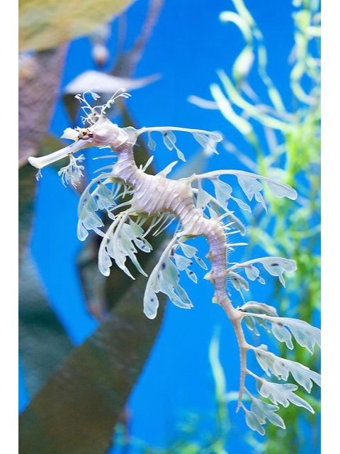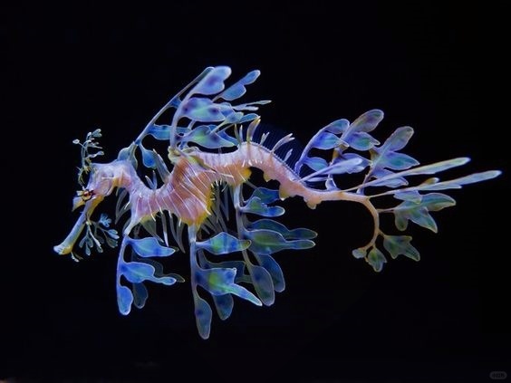 🍀习性特点:叶海龙善伪装,可以依靠海藻状附肢的拟态来保护自己,不被天敌发现。其骨质身体及体侧的尖刺也是对自身良好的防御,往往能惊吓到捕食者。但该种身体坚硬,限制了流动性。唯一能使自己在水中移动的方式是快速摆动臀鳍和腹鳍。胸鳍则主要用于控制移动的方向。叶海龙鳔中的空气可以波动,所以它们可以保持身体静止在原地的位置,或在水中垂直上下移动。