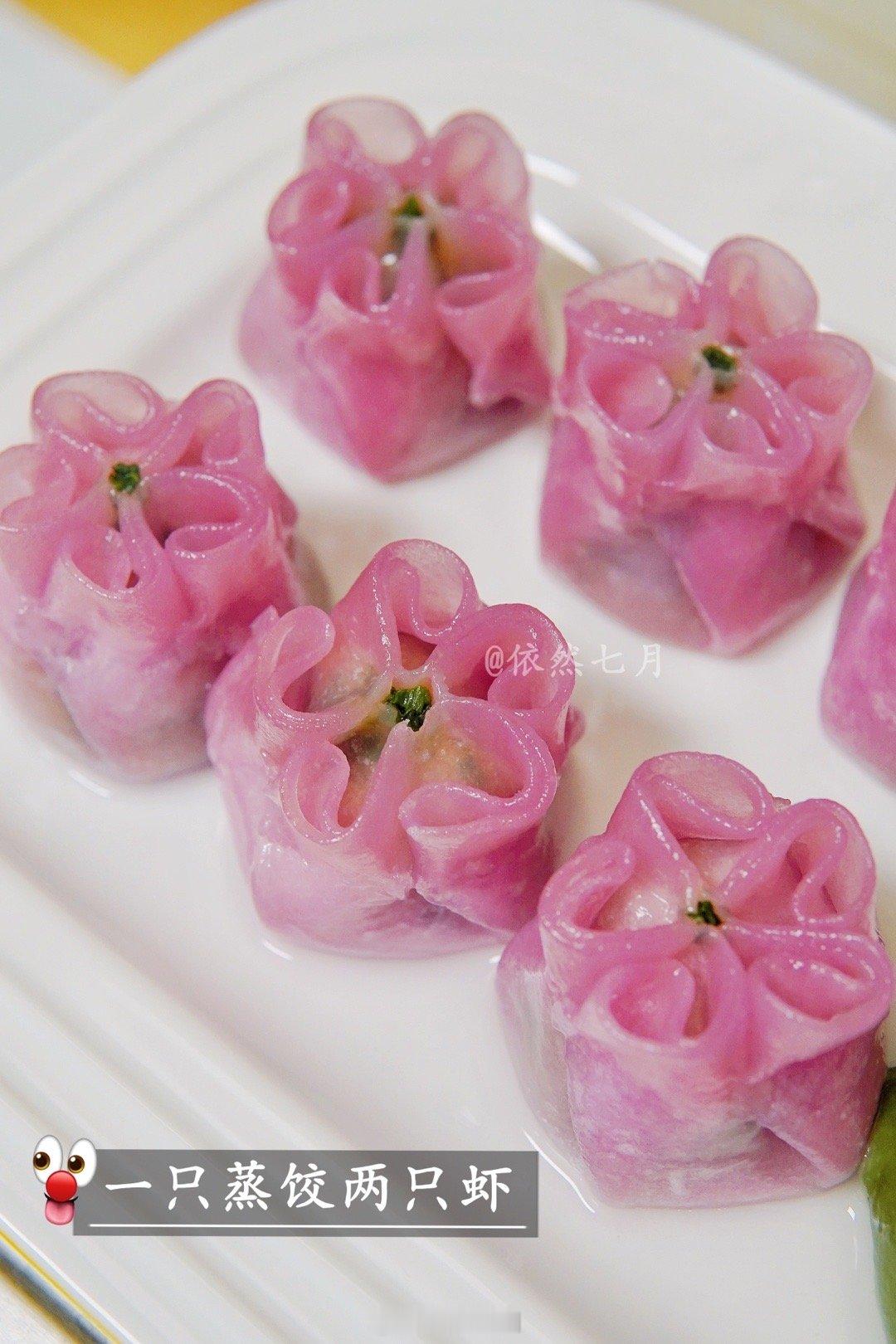 粉色虾饺是火龙果色,一只虾饺里面两只虾仁,儿子说太好吃了,要能管够儿就好了!我说这么美的东西一定得留念想儿,不能吃顶着。