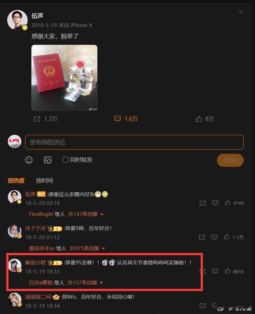 “女权婊别蹭了!”前LPL女解说小楼被开挑拨朋友夫妻感情。