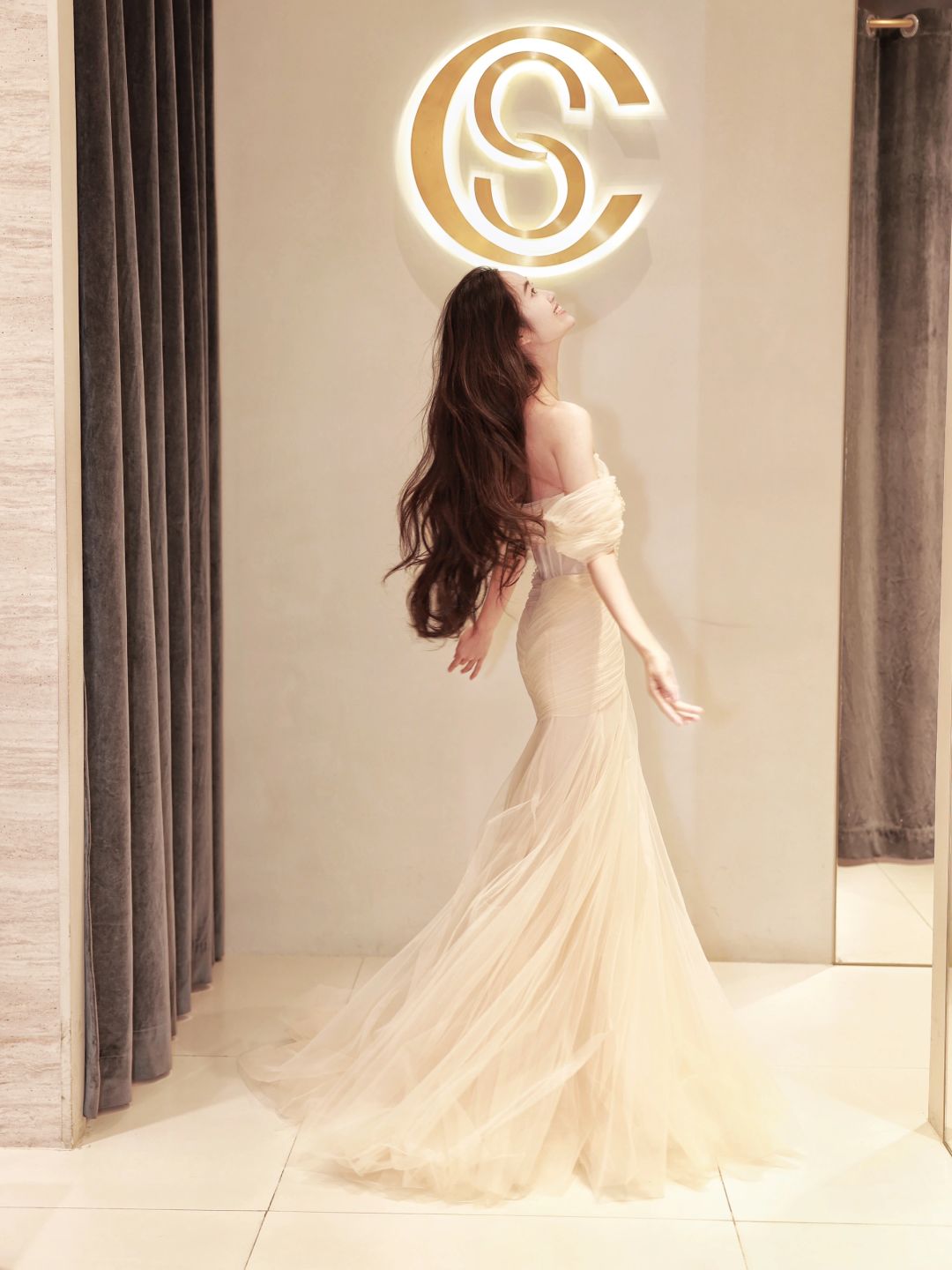 她披着长发从光里走来
