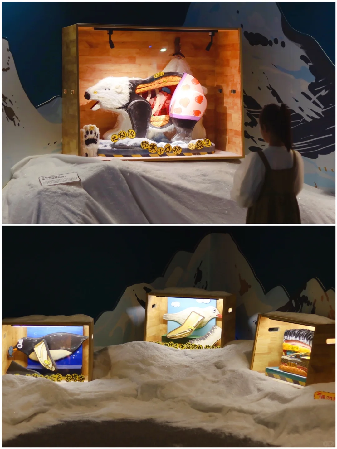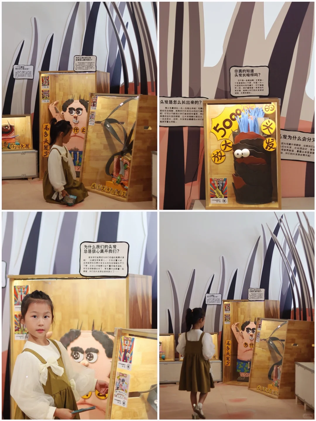 展馆总共分为三层4个区,A区是自然探索空间,B区是观影空间,在这里可以看到模型师老原儿以往的科普短视频,C区是人体探索空间与宝藏商店,D区是科普模型工作室真实还原