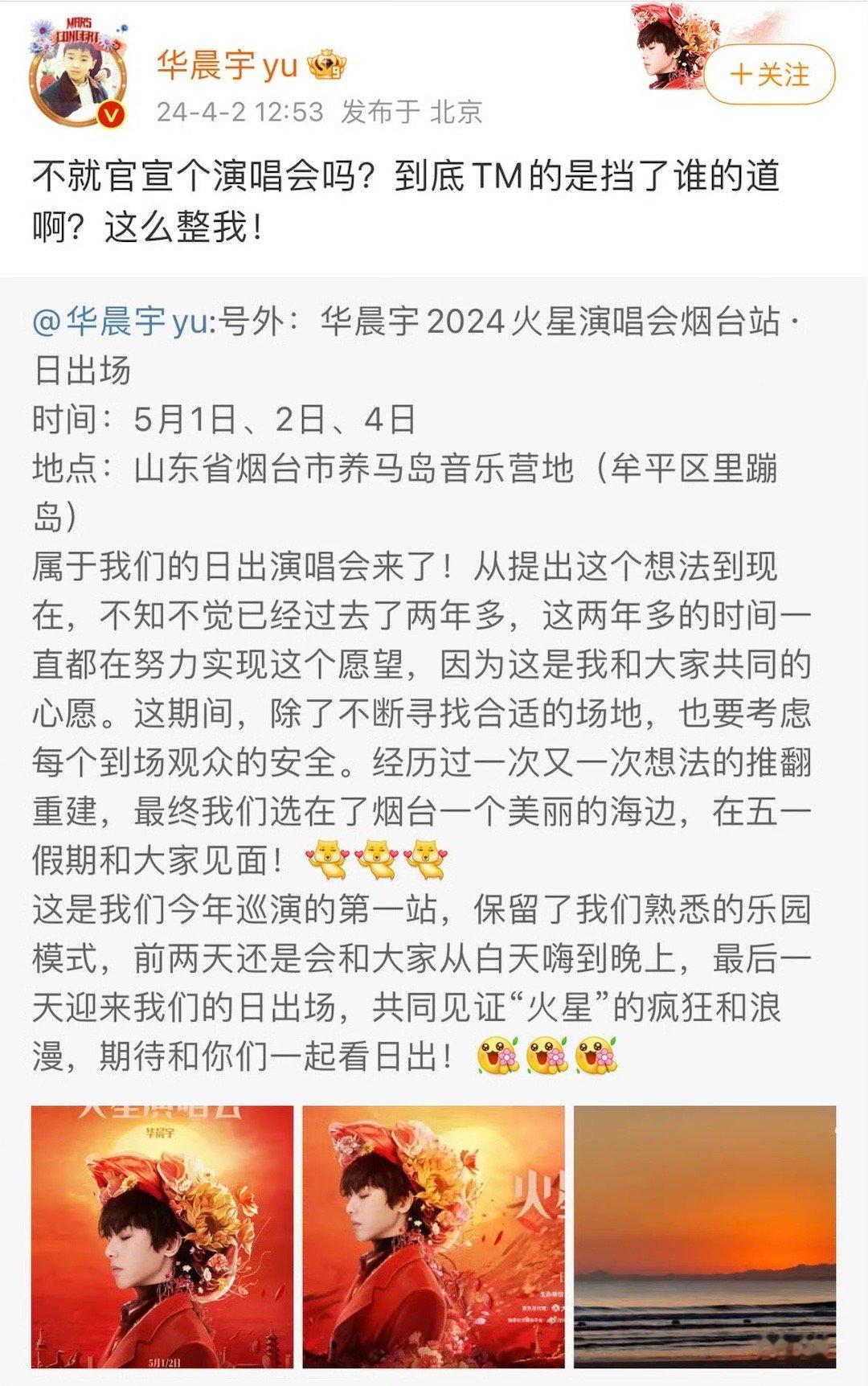 #华晨宇9年前就拒绝月经羞耻#上热搜后,华晨宇发博:到底挡了谁的道这么整我