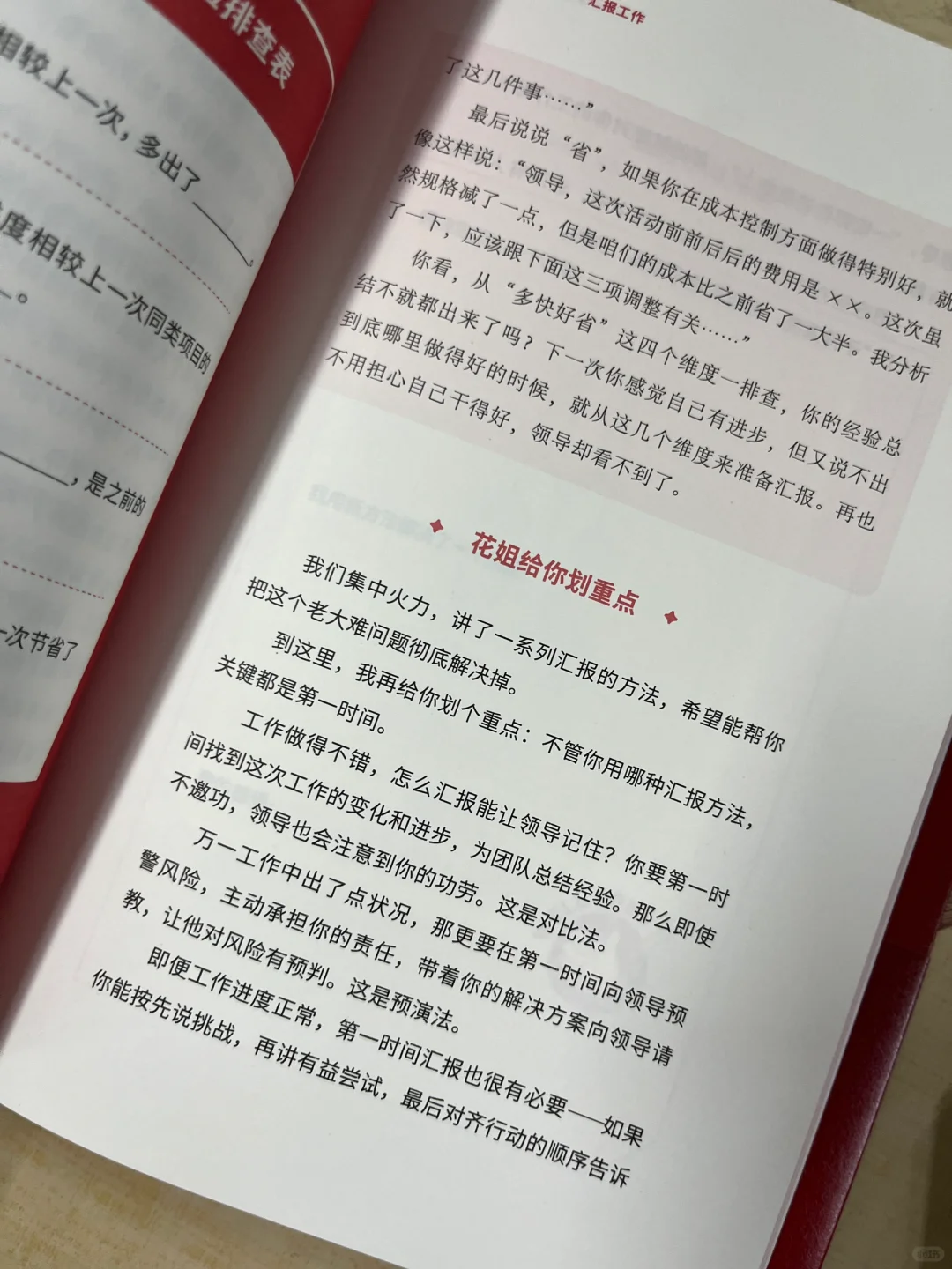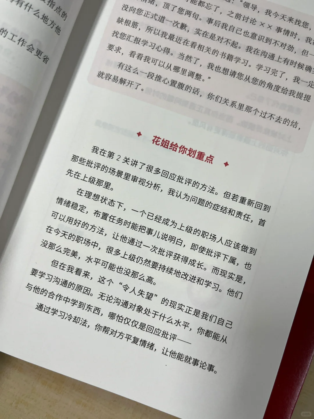 最忙的时候,我同时负责了4项工作。工作一忙,难免心烦气躁,但对工作推进毫无作用。这本书里说的方法太有用了,我也试着建立清单,并把每天的工作分个轻重缓急,然后打卡推进。就像作者所说,把每天的工作分成“大戏”和“小品”。“大戏”必须日事日毕,“小品”允许延迟24小时。这样就能让自己既有纪律,又有弹性。
