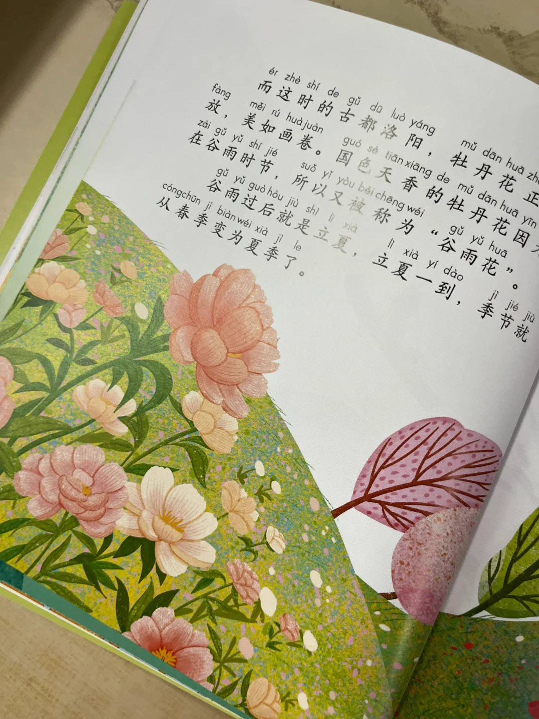 这是《一阅而起汉语分级阅读绘本》(第七级)中关于“节气之美”的片段,语言非常美,且极具画面感。