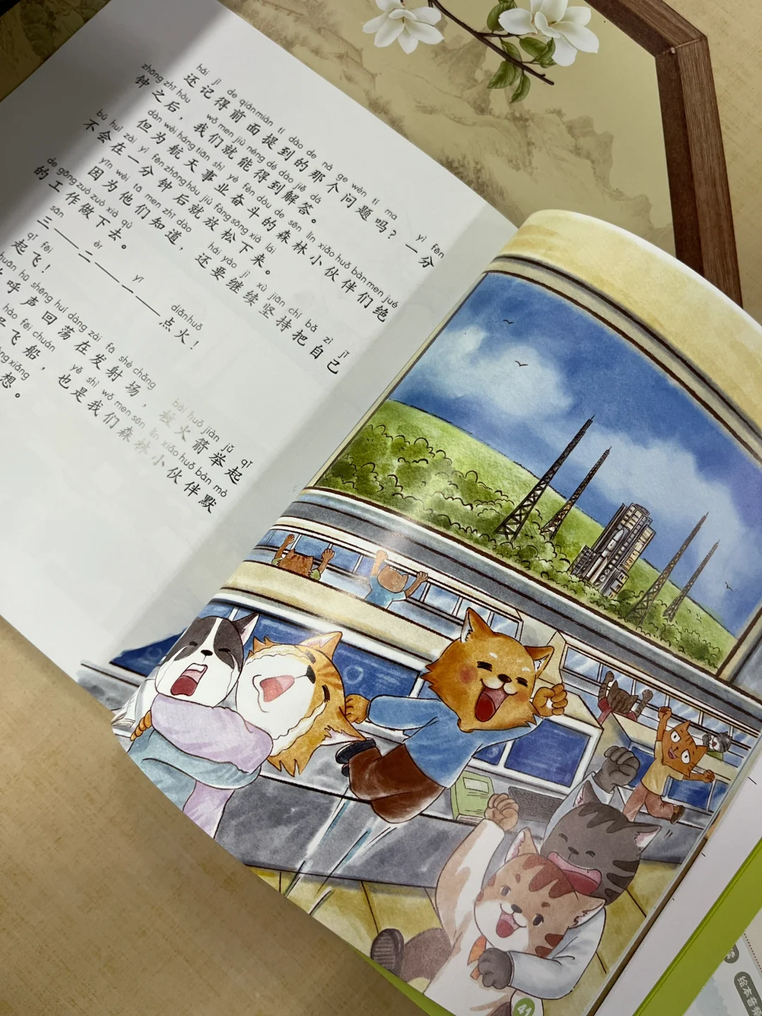 这套绘本包括8册注音故事、1册阅读自评手册、1册听写描红本。其中,8个故事对应8个主题,有关于传统文化的《节气之美》、日记写作的《小乌鸦日记》、学习做自然笔记的《花儿的心事》、锻炼逻辑推理的《大侦探福尔摩斯》、家务劳动相关的《第一次做蛋炒饭》、体育相关的《我们的运动会》、认识社会的《森林号:飞向太空》、还有中国风、改编自老舍儿童剧的《宝船》。