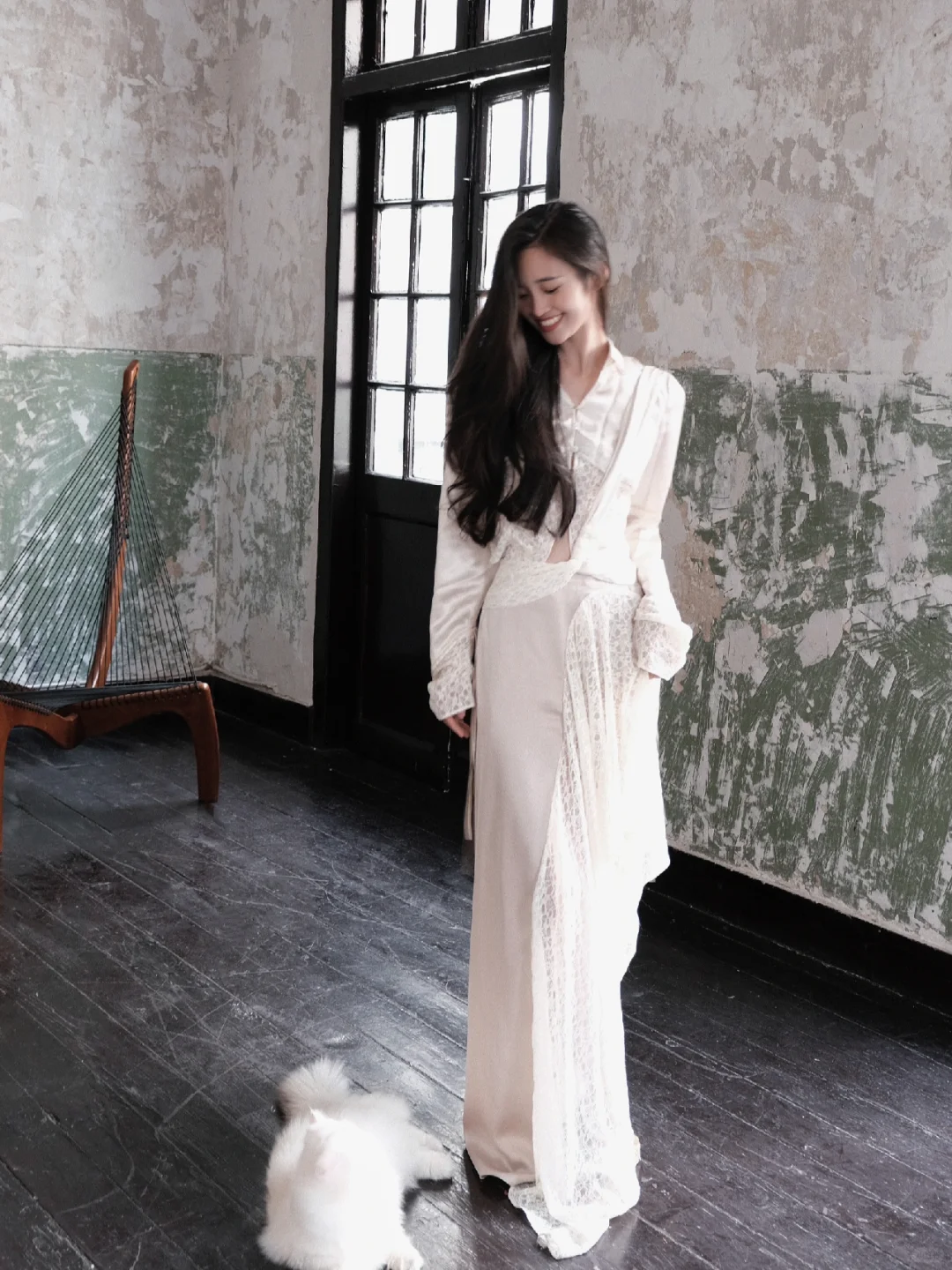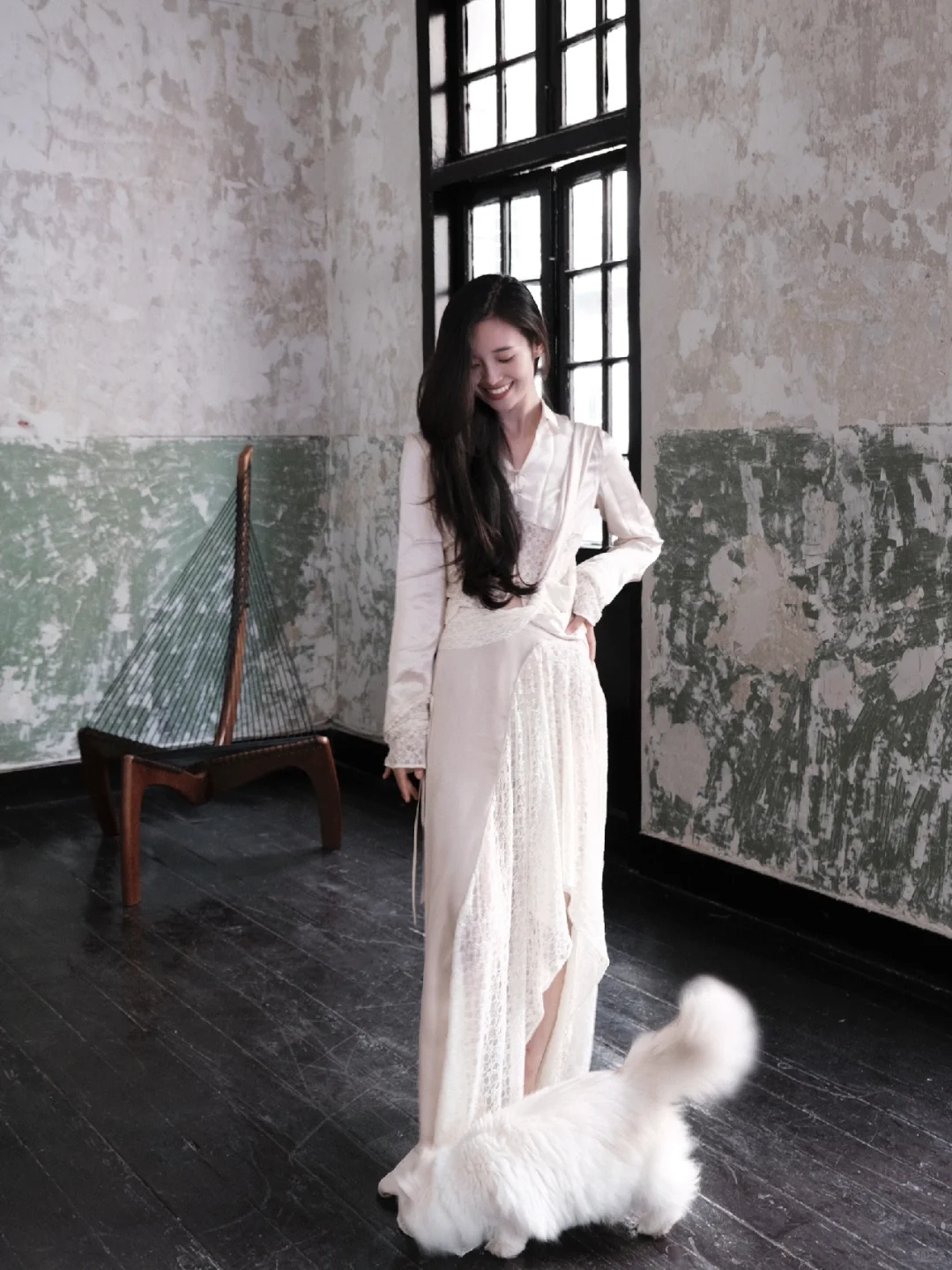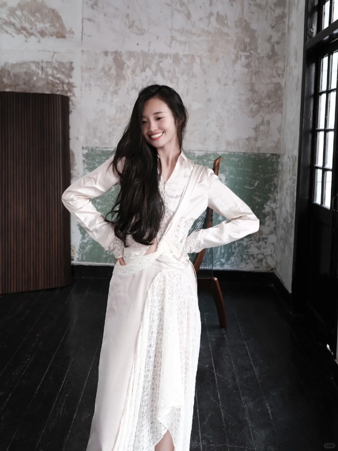 白衫是薄瓷的容器盛着心跳与呼吸绿裤是柔韧的藤缠裹着骨骼的倔强~柳丝拂