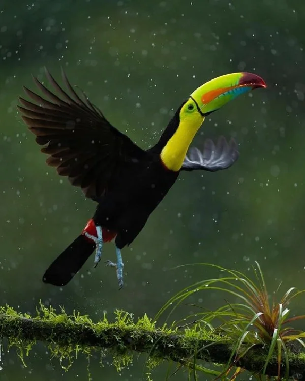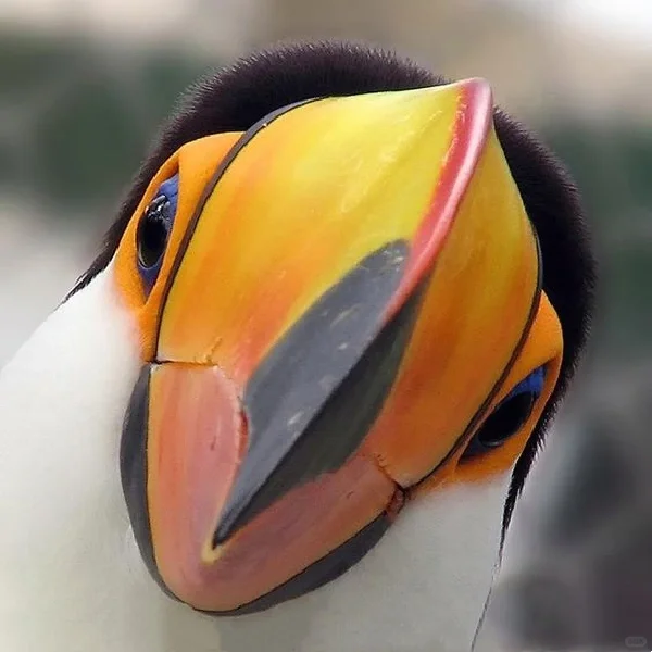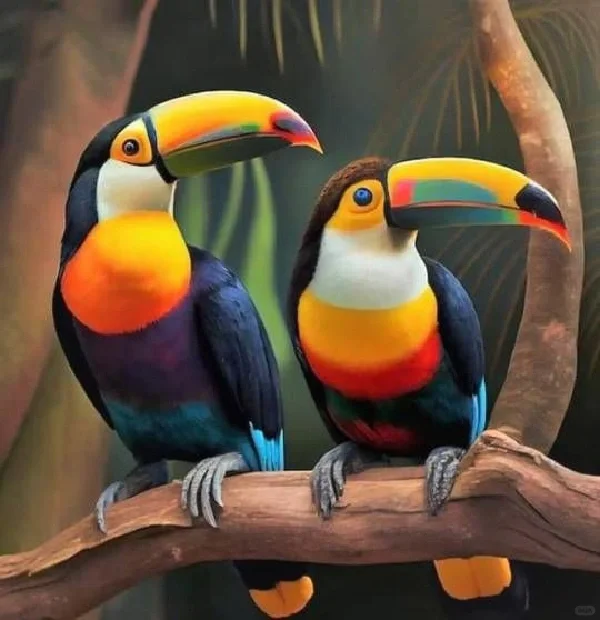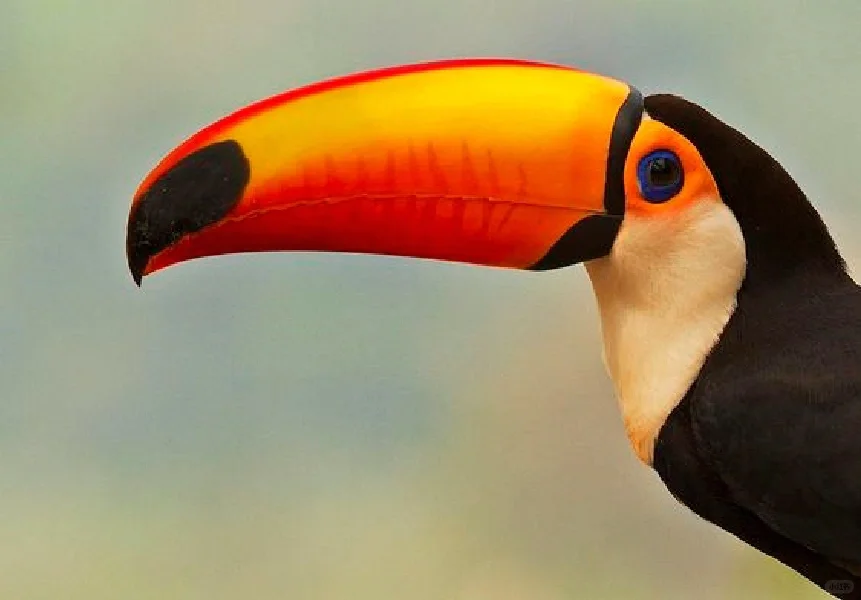🍀形态特征:鵎鵼全长约为67厘米,其嘴部长度达到17至24厘米,宽度则在5至9厘米之间,形状宛若一把锋利的“刀”。这独特而美丽的嘴巴分为上下两个部分:上部呈现出淡淡的黄色并带有一些淡淡的绿色,而下部则是深邃的蔚蓝色,同时在其尖端还会有一抹鲜红的点缀。这种鸟的眼睛周围环绕着一圈深蓝色的羽毛眼圈,胸部呈现出温暖的橙黄色调,背部则是漆黑色。其艳丽夺目的色彩和令人惊叹的巨嘴使得它具有极高的观赏价值。