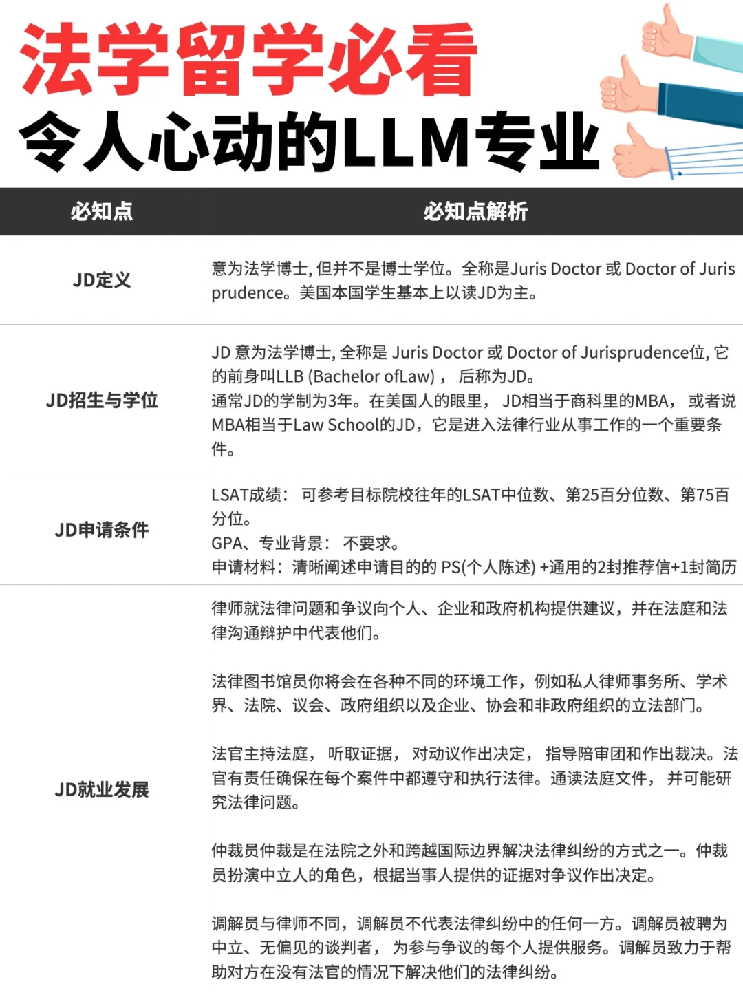 👇以下是关于LLM和JD的详细比较,帮助法学专业申请者更好地理解两者之间的区别: