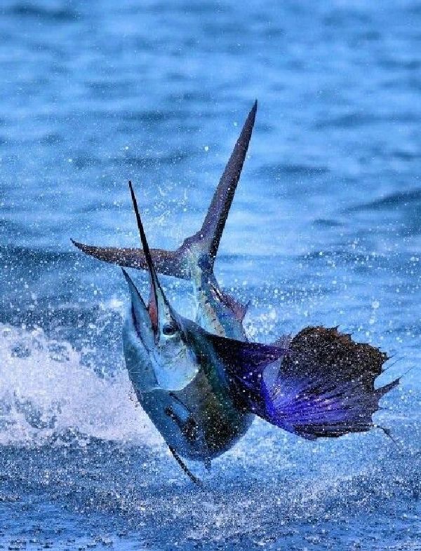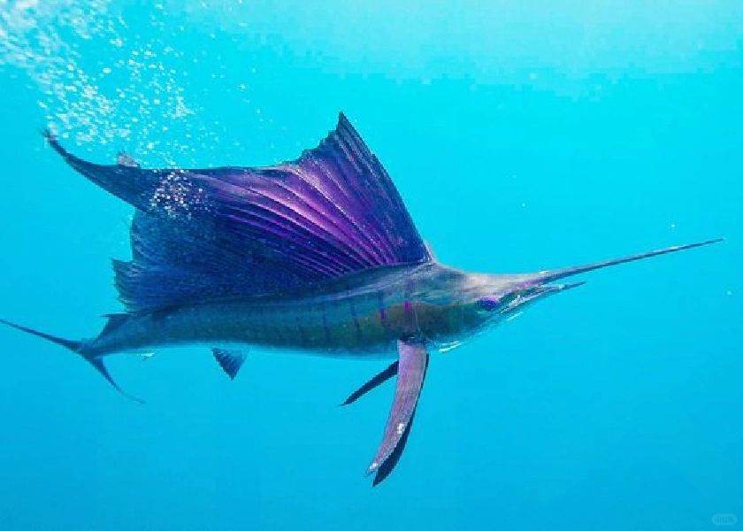 🍀习性特点:旗鱼游泳的时候,把高高的背鳍收起,以减少阻力;长剑般的吻突,迅速将水向两旁分开;用不断摆动尾柄尾鳍的办法产生前进的推力,就像航船的推进器那样。加之流线形的身躯,发达的肌肉,巨大的摆动力,能像离弦的箭那样飞速地前进,最高时速可达190千米,就是平时,速度也有每小时90~110千米,成为海洋里的游泳冠军。