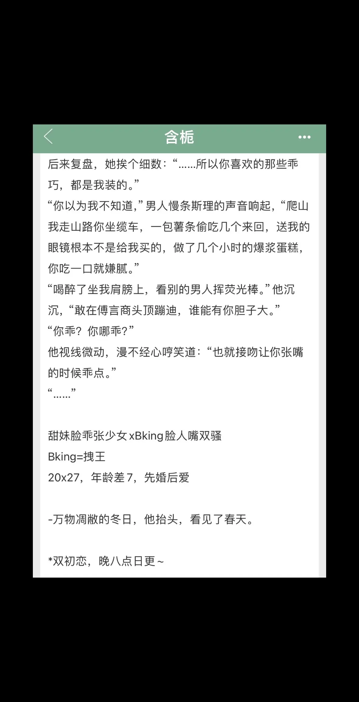 甜妹脸乖张少女xBking脸拽哥,全文完结,彼此唯一! 年龄差七,先婚后爱。
