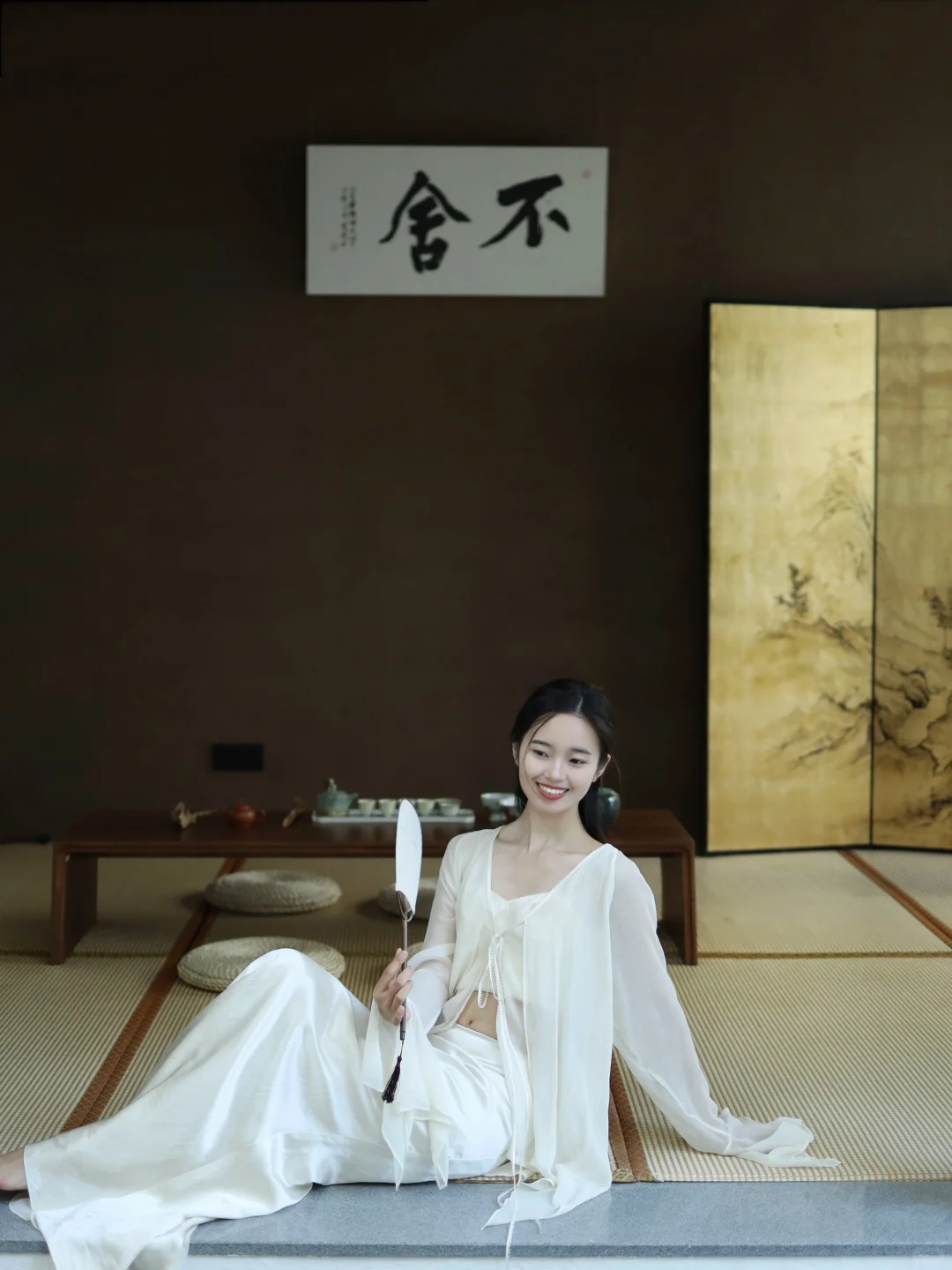 白衫是薄瓷的容器盛着心跳与呼吸绿裤是柔韧的藤缠裹着骨骼的倔强~柳丝拂