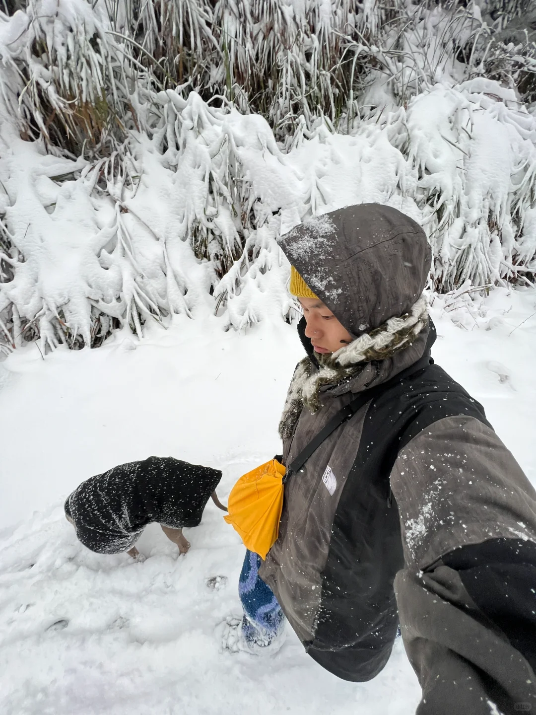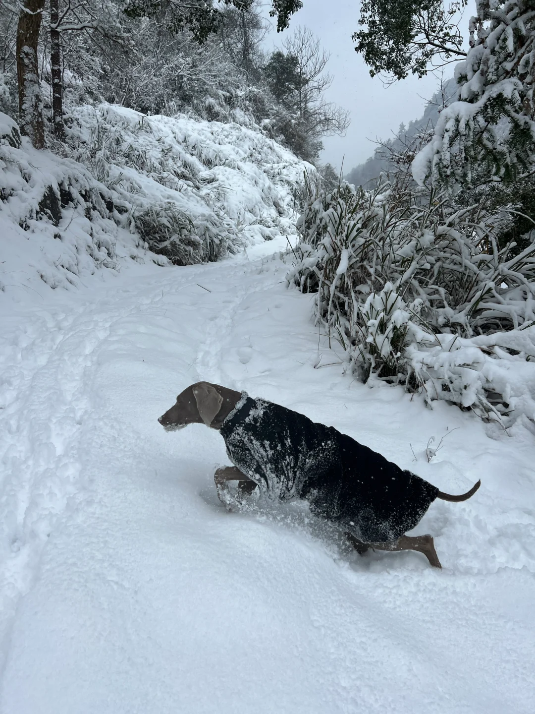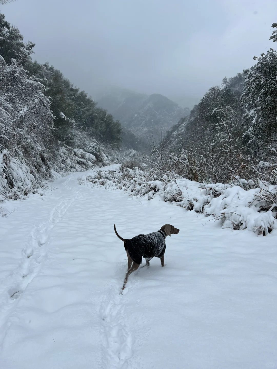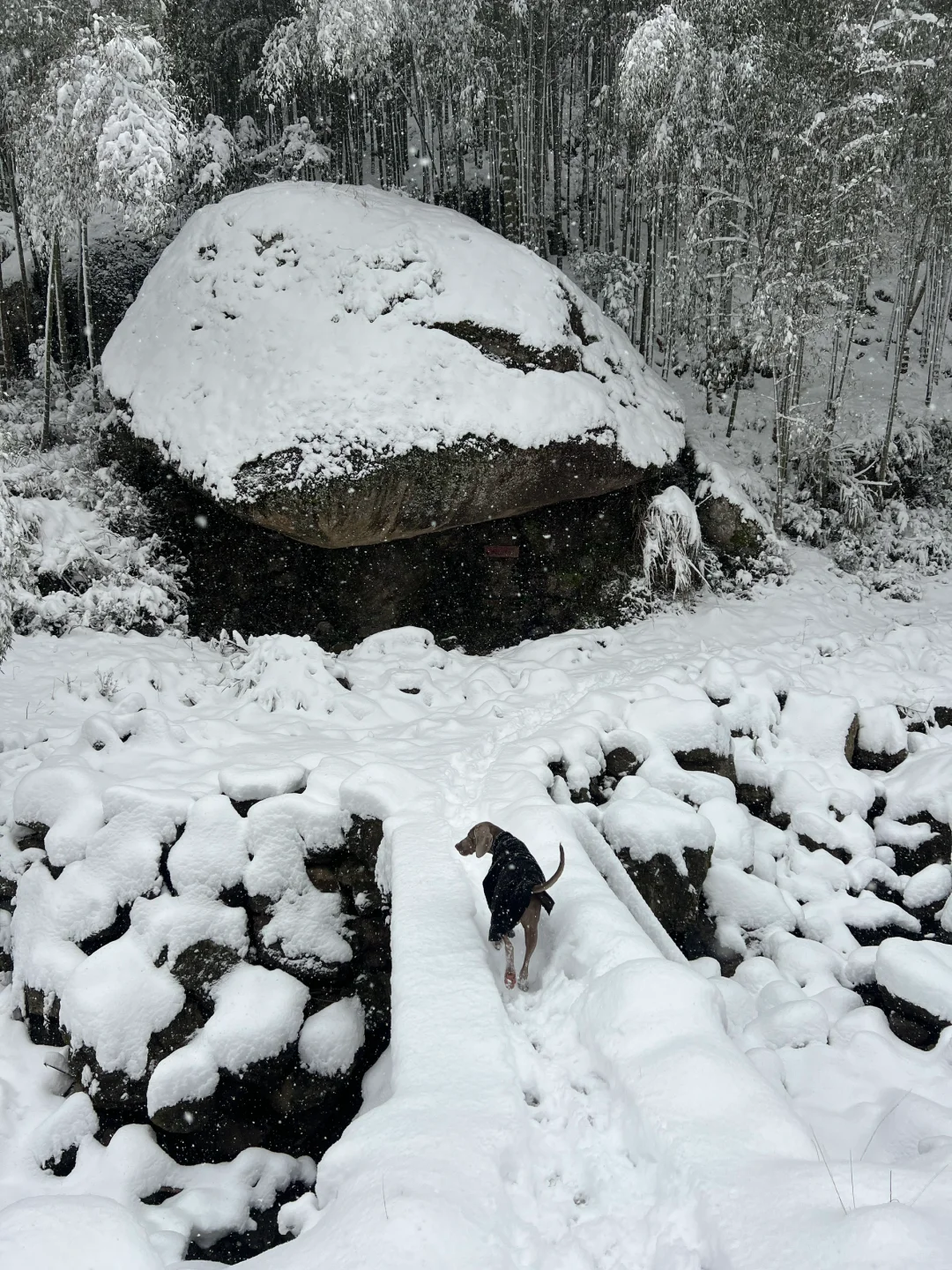 今天突然大降温,下起了鹅毛大雪 赶紧带着泡芙进山去玩会儿,把她开心坏了 我长这么大还是第一次在浙江见如此大雪 (走着走着鞋底直接给我冻掉了…gg