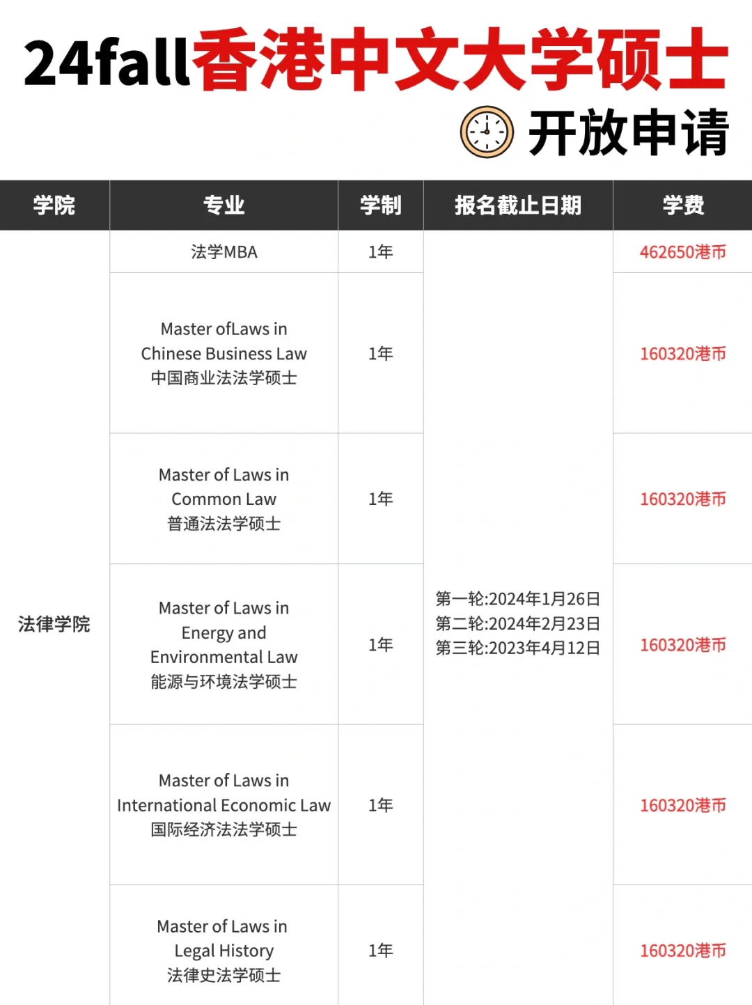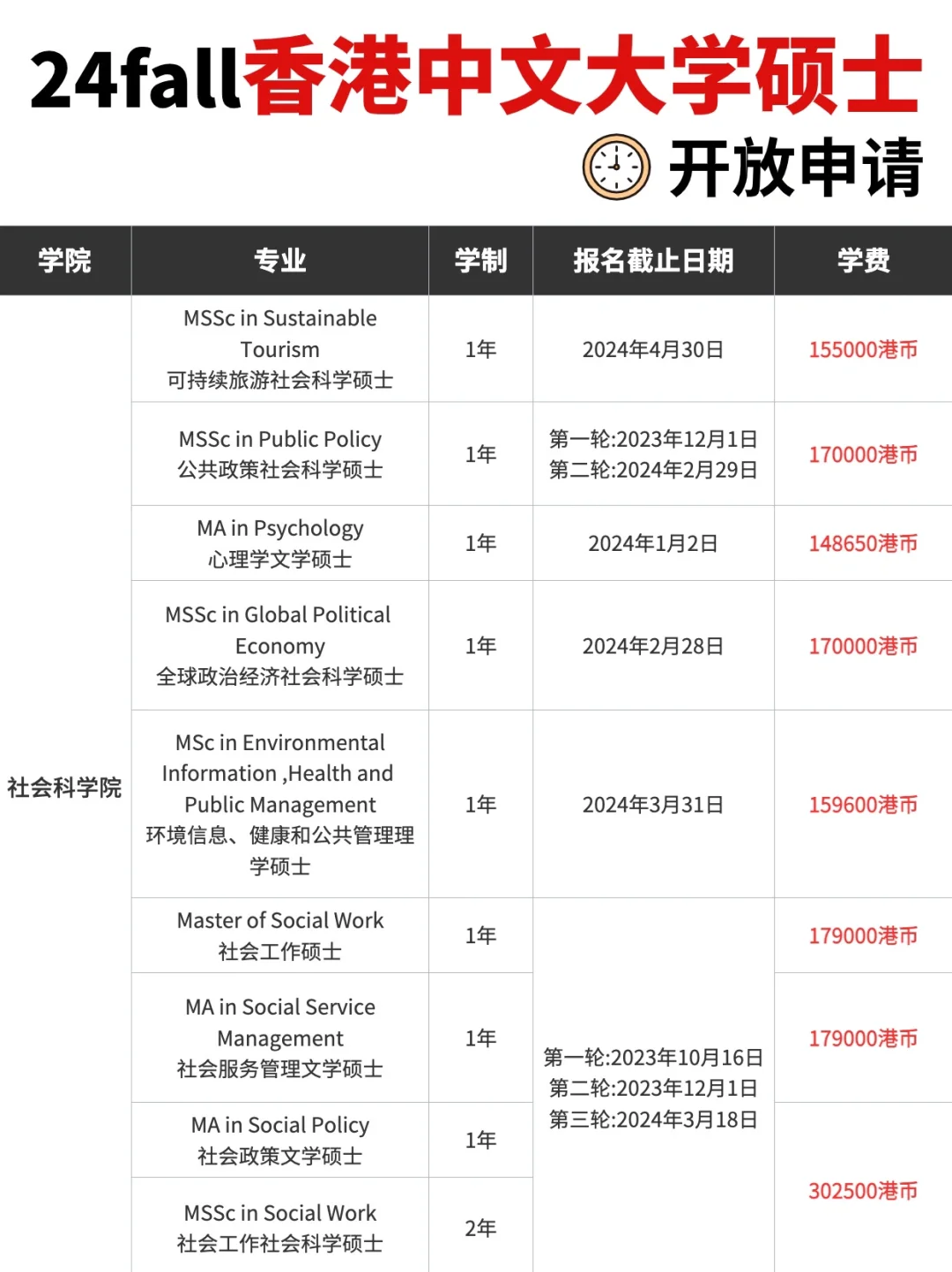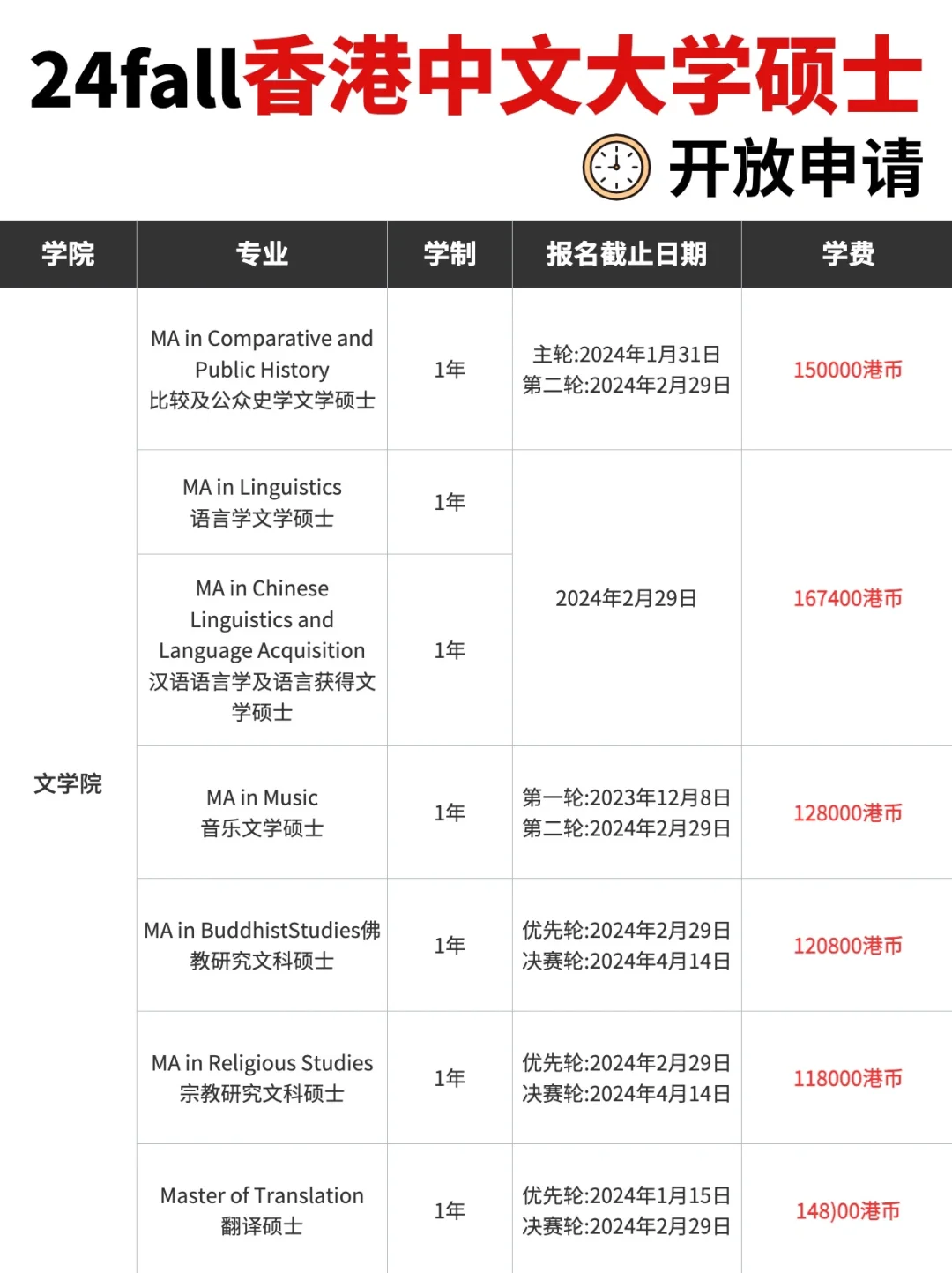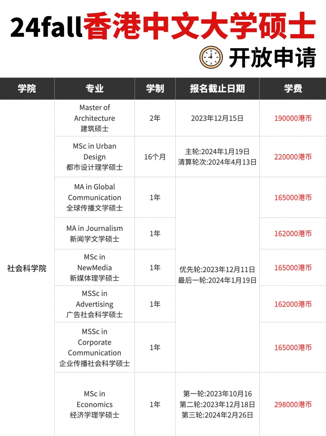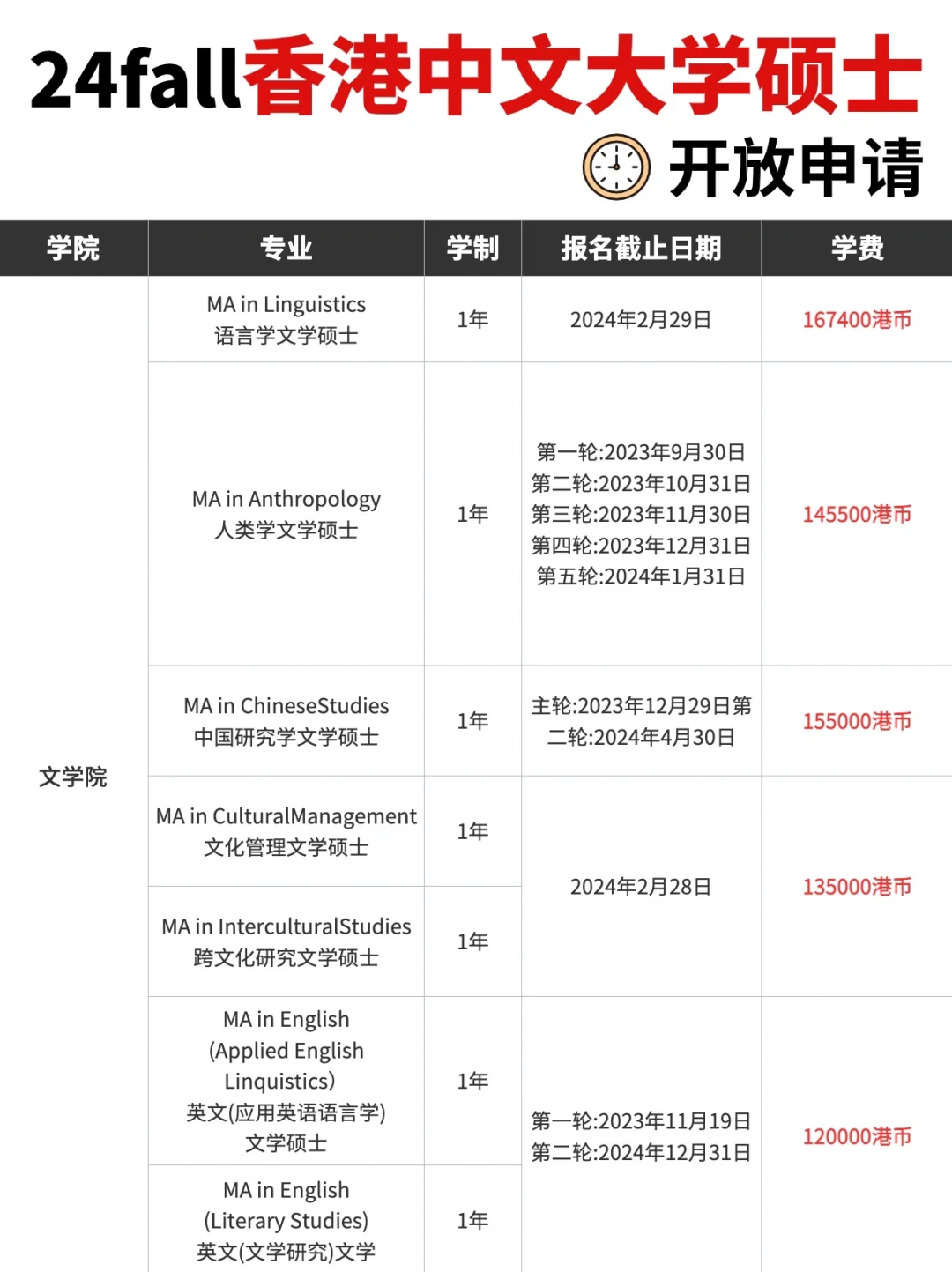 🌈 🌈 在此再次提醒:港中文大学采用“滚动录取”制度,先到先得,名额有限,建议尽早了解各专业的申请截止时间🙋
