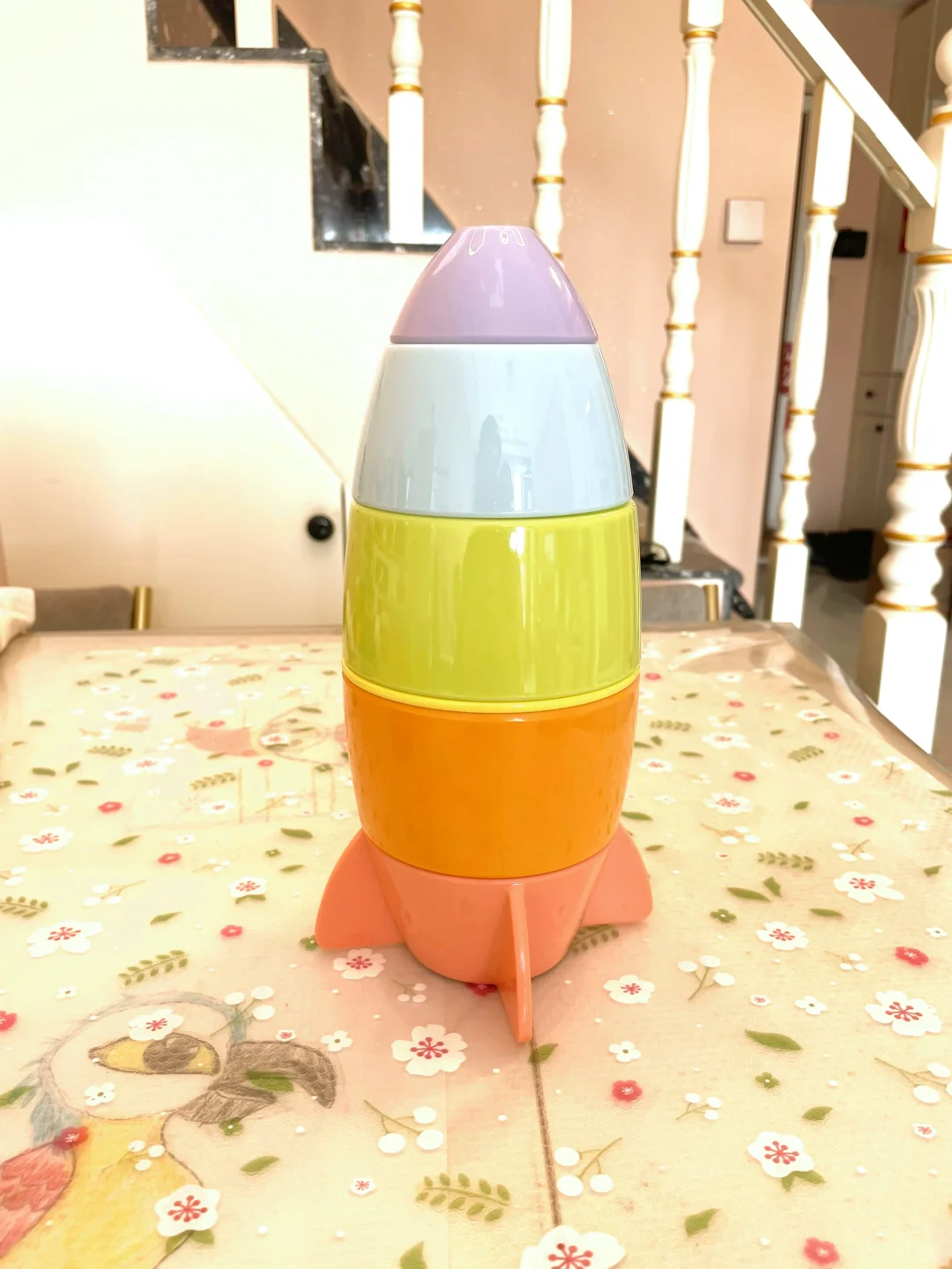 而我们新买的那套瓷器叫~花开富贵,很喜庆;火箭冲冲碗寓意~2024一飞冲天,食品级树脂材质既环保、也不怕小侄子弄到地上、装食物放在冰箱节省空间,还能密闭……