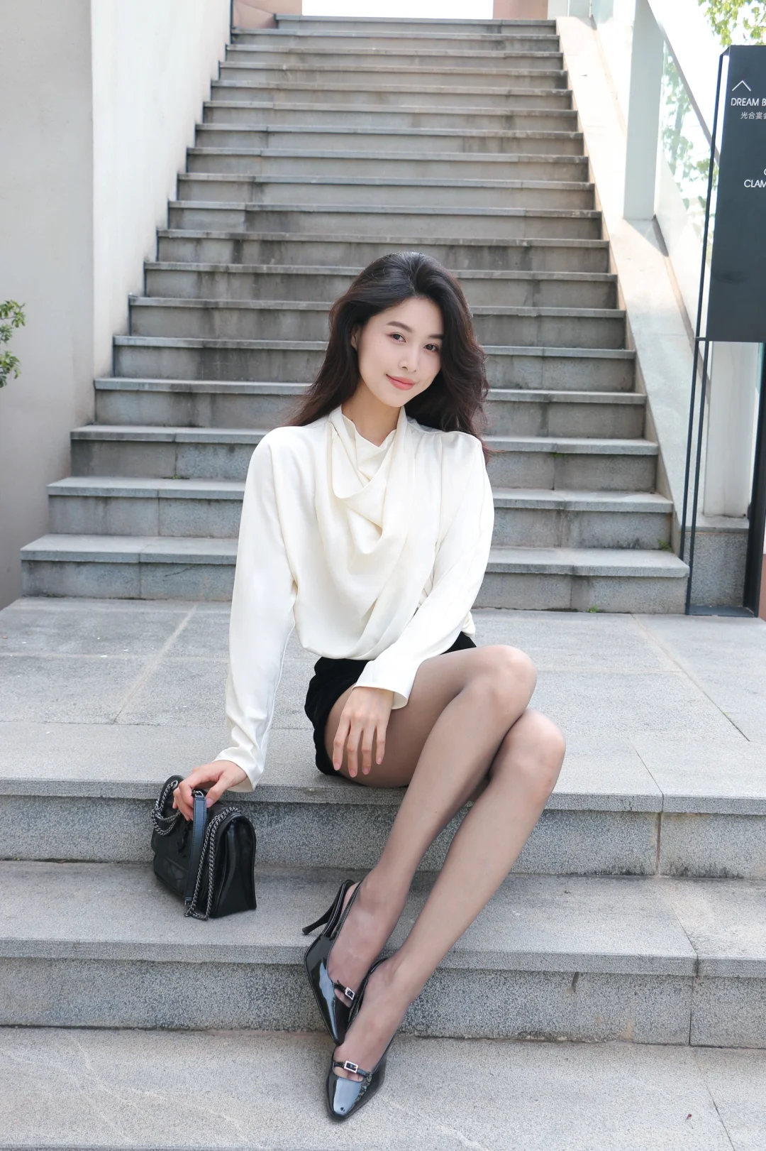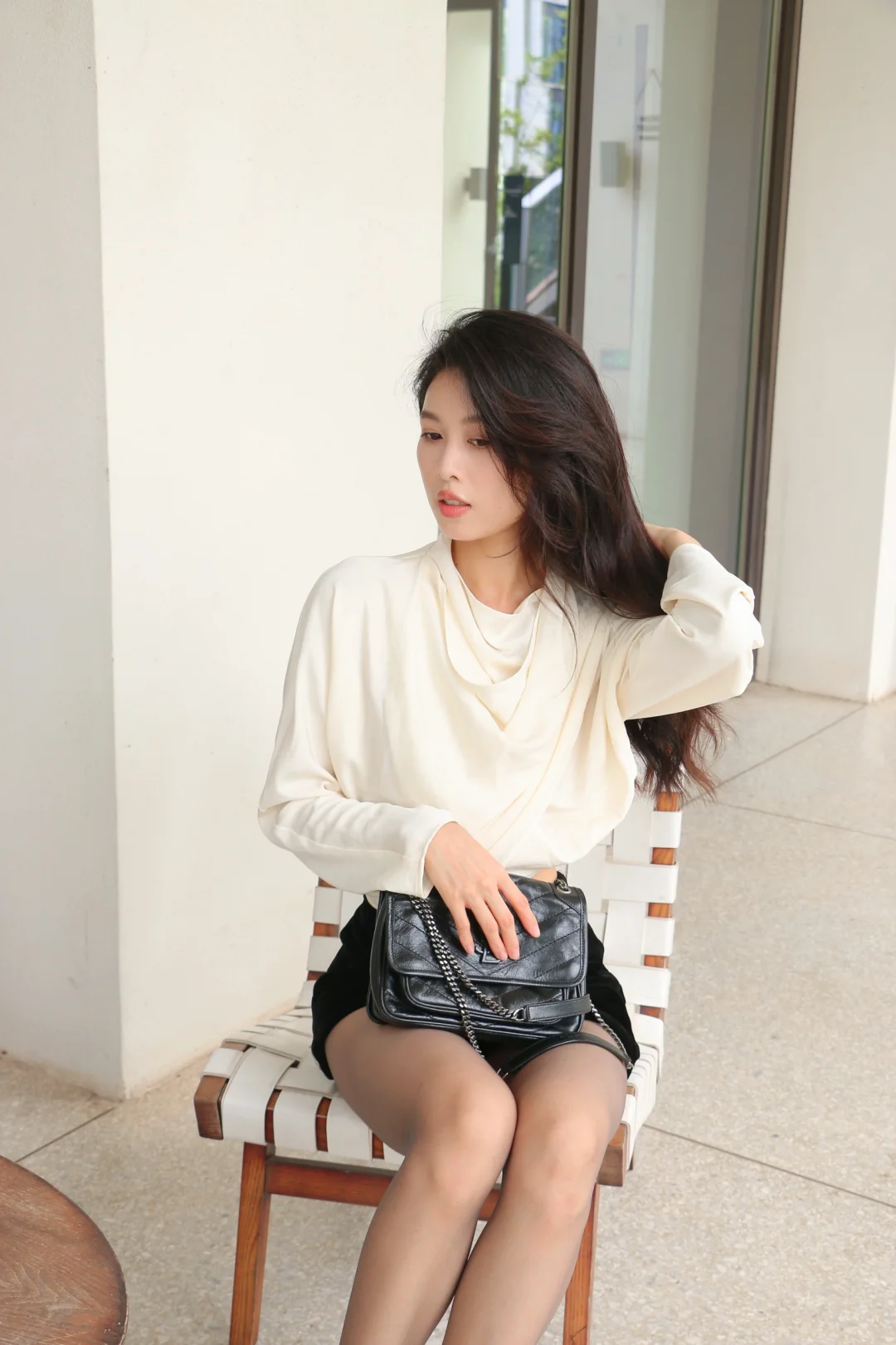 日常裙子➕拖鞋休闲惯了 今天来一个姐系感 精致起来! 简约不简单的极简黑白look: 垂坠的荡领➕层叠交错的设计 让原本沉闷的衬衫更显优雅浪漫啦 而且缎面的面料 触感更舒适~ 🏷️ magyann