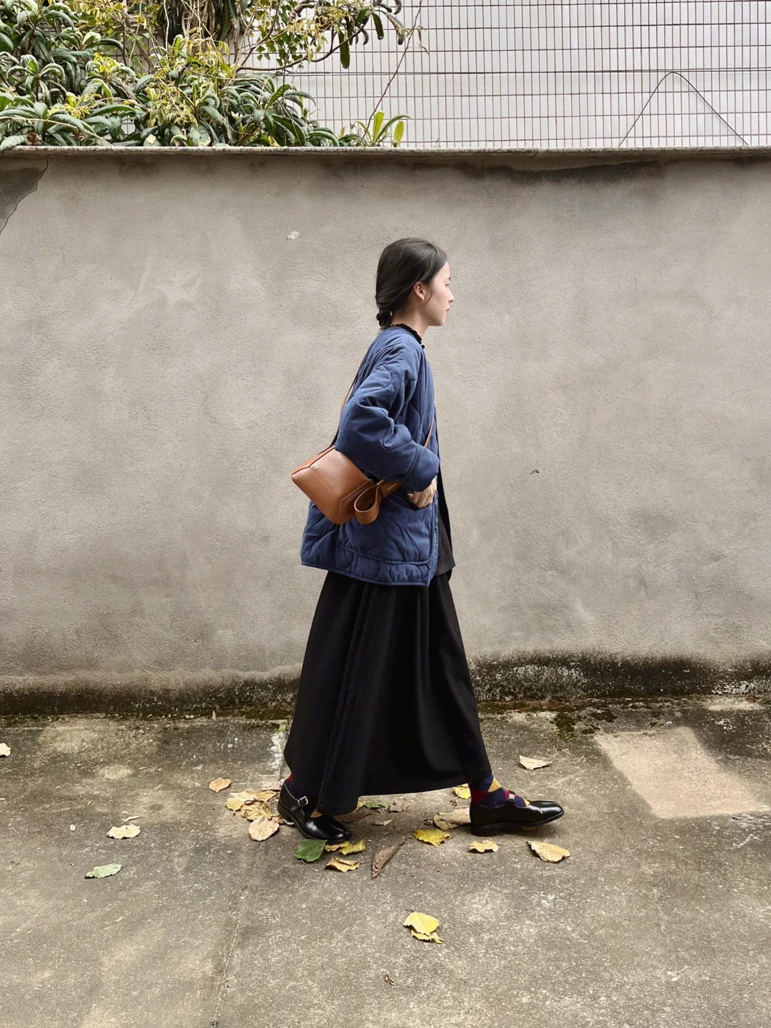 优雅东方韵,浅蓝上衣配米色长裤,漫步古风庭院,尽显时尚与古典的完美融合。