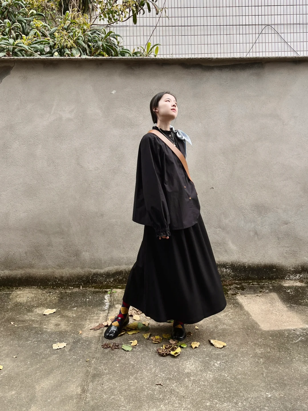黑色皮质连体裙勾勒利落线条,过膝皮靴踩出酷飒气场,简约背景里尽显冷艳魅力。高级