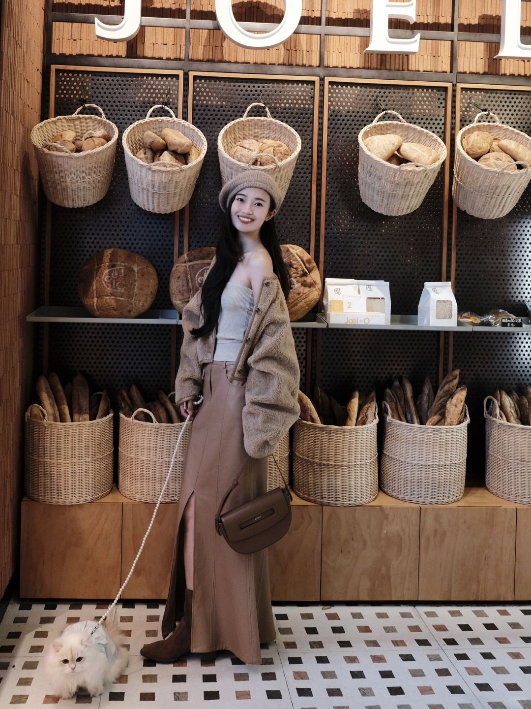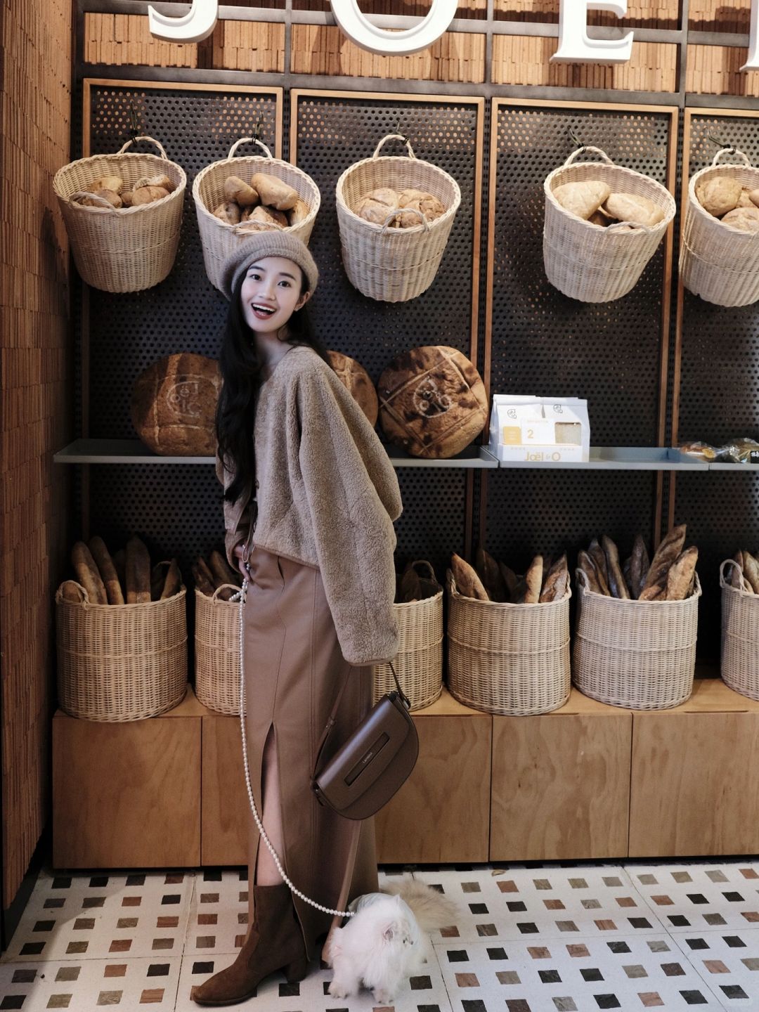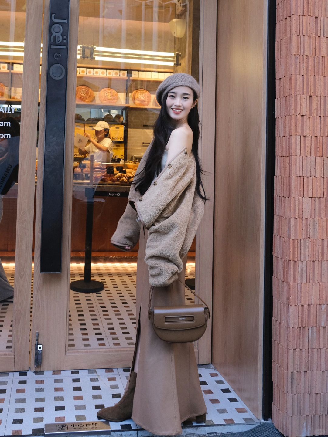 🏾棕色系帽子 羊羔毛外套 皮裙 还有点睛之笔的马鞍包 从头到脚的美拉德风 感觉自己今天是一杯焦糖卡布奇诺
