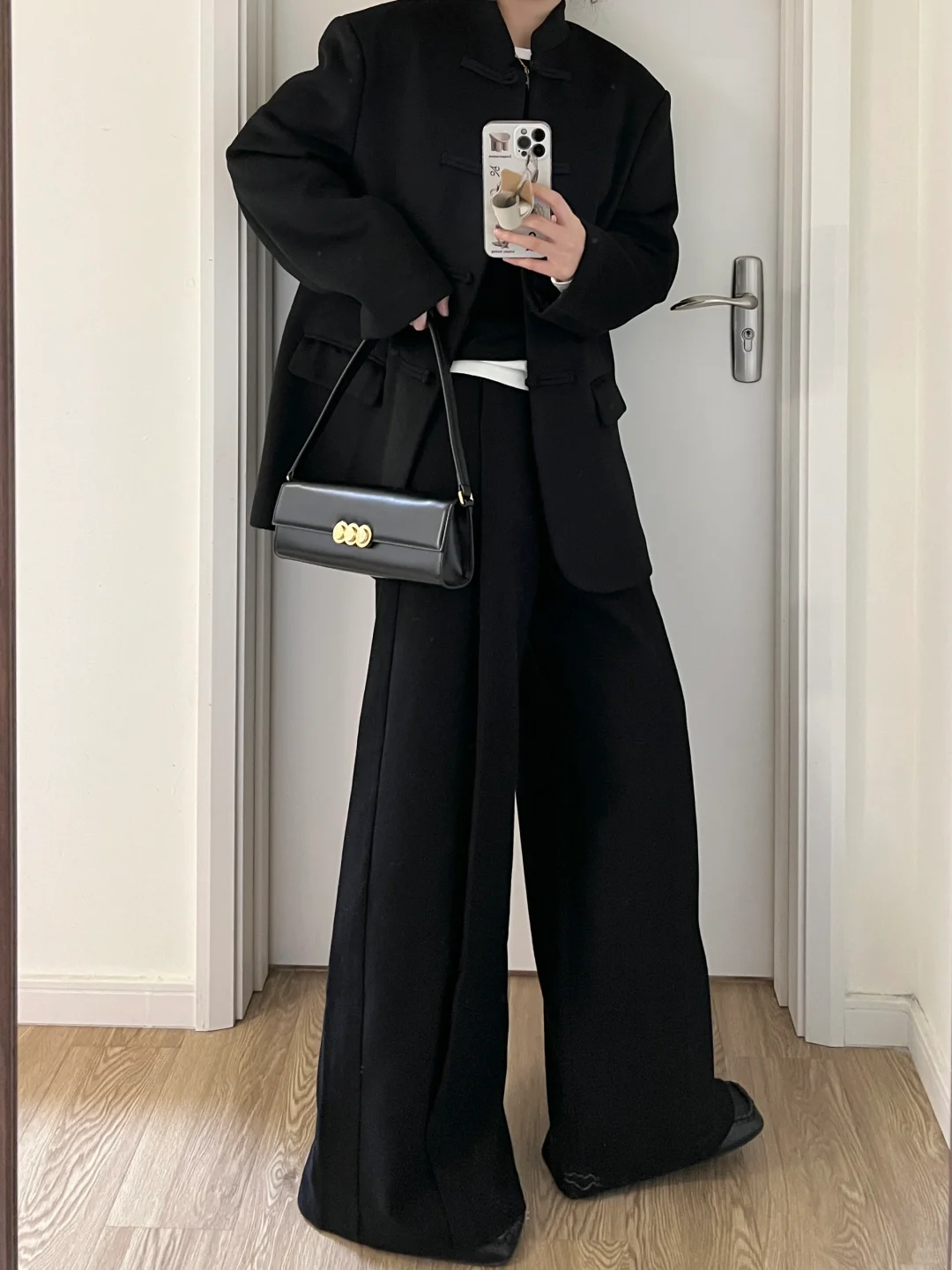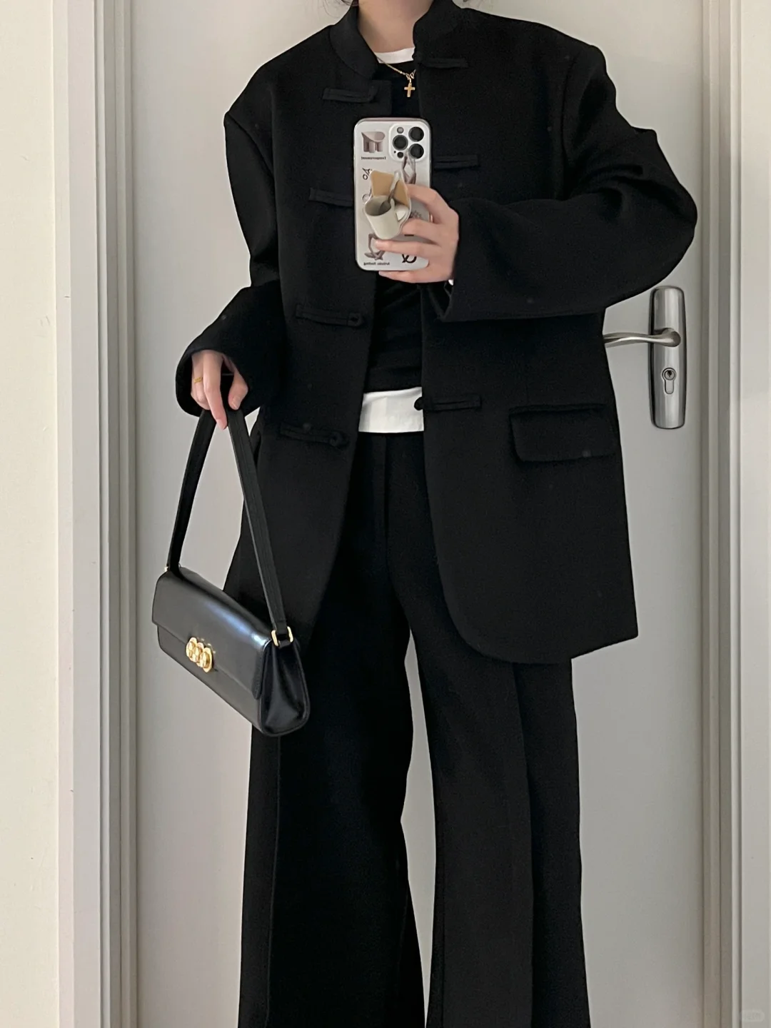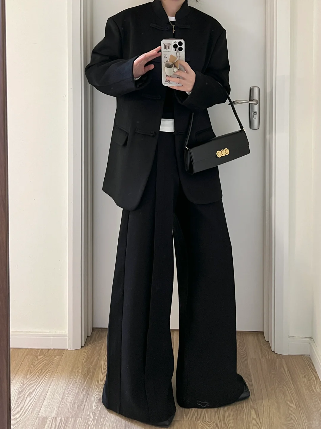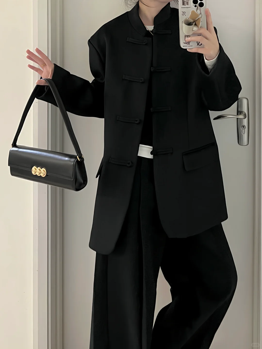 早春新中式|黑色盘扣西装外套+黑呢直筒裤