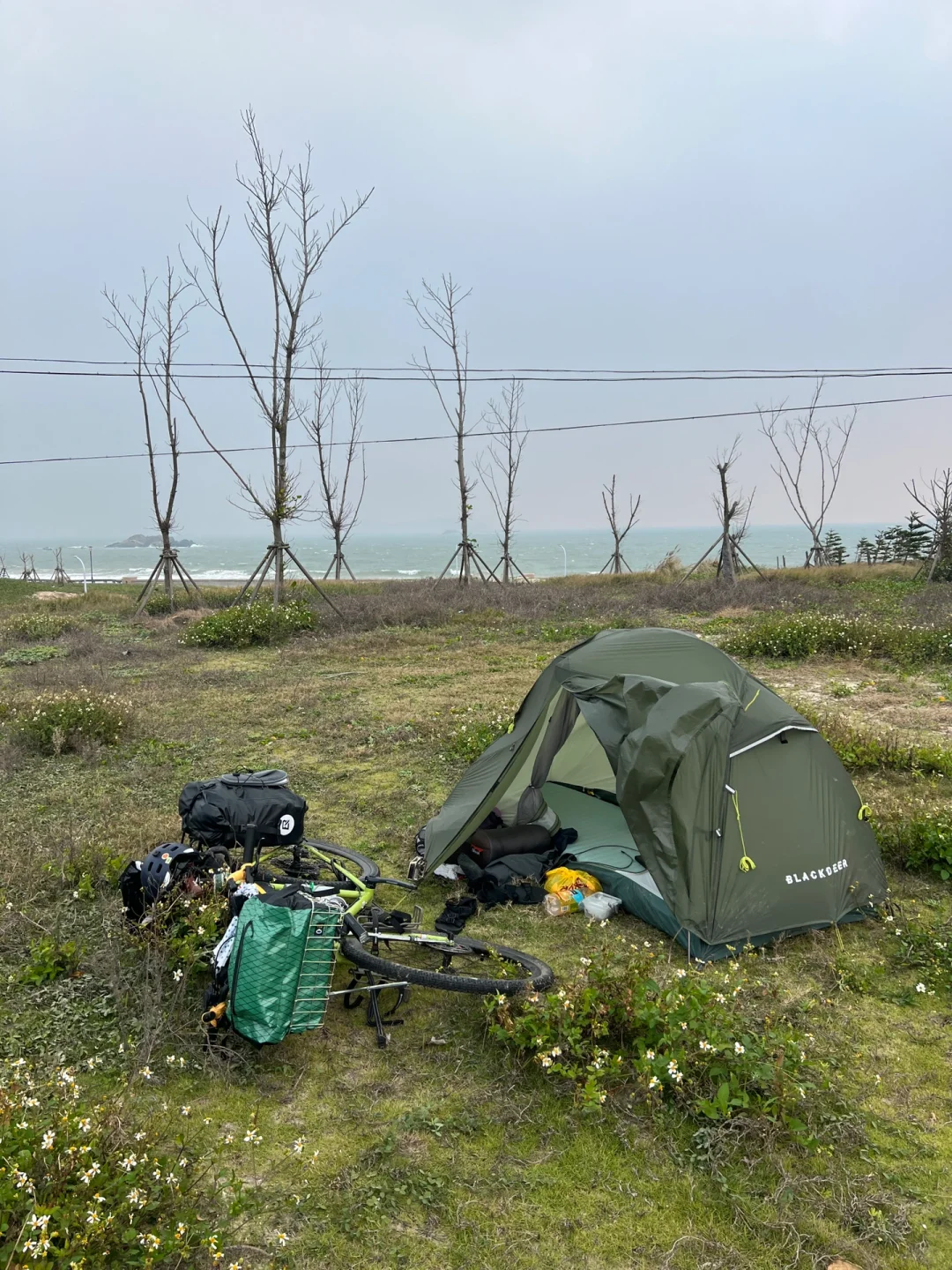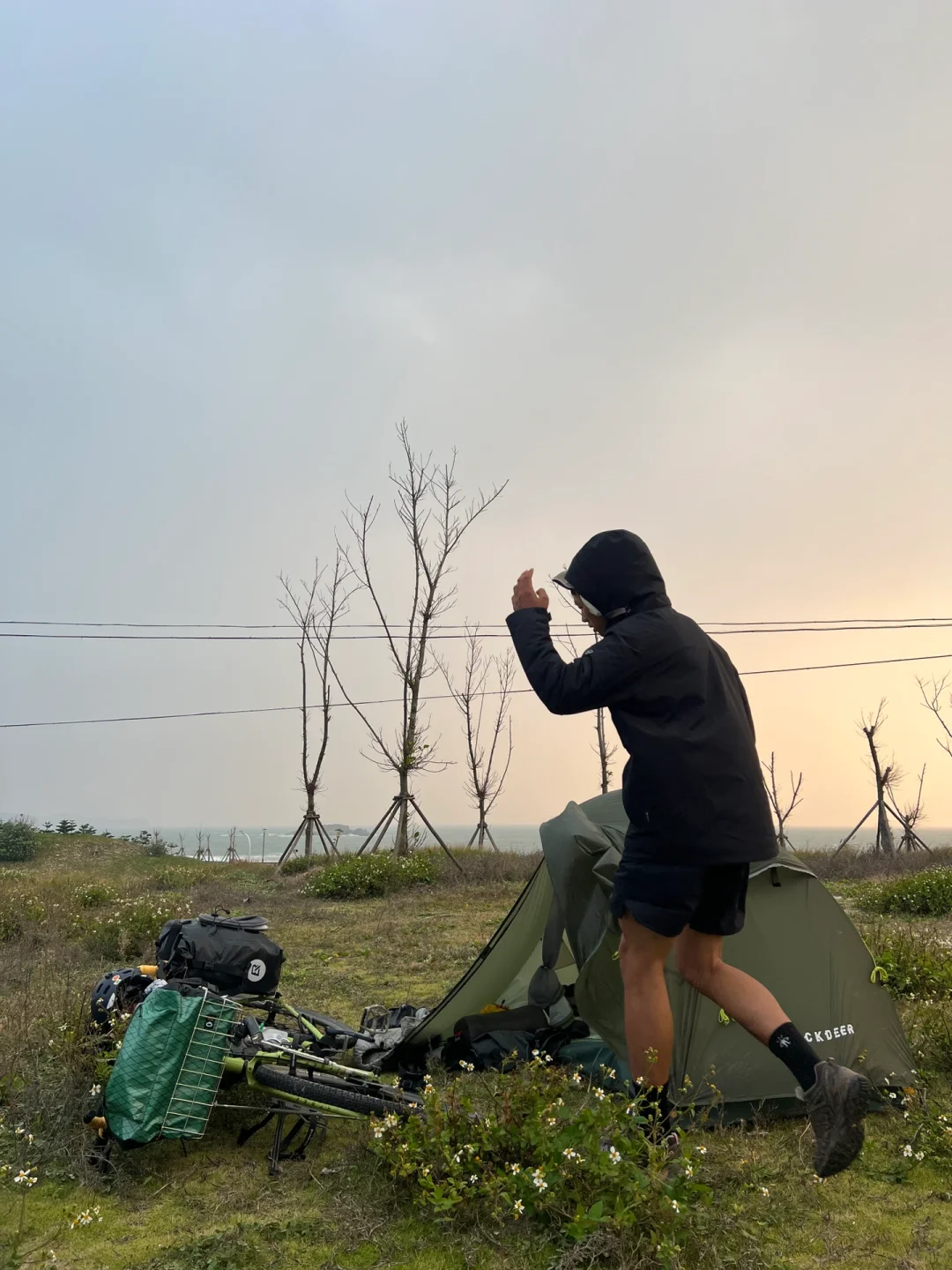 这是在平潭岛的第三天,天气突变,狂风从夜晚一直刮到了早晨,被风吹帐篷的噪声吵醒,打开帐篷才感受到这个风力有多强,帐篷都差点被吹飞,还好没有下雨,如果狂风加雨的话就难办了。
