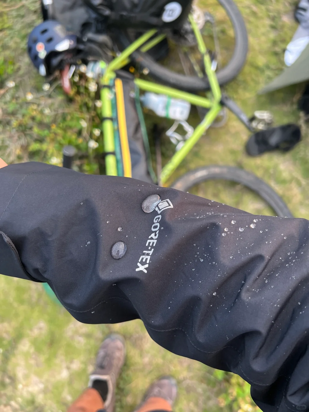穿的是来自诺诗兰的GORE-TEX三合一冲锋衣,Gore-Tex面料:可持久防水,即便下大雨也不用担心。可持久防风,风寒效应不会降低服装的保暖的效果。可靠的透气性,汗气可轻松排出,保持舒适骑行。