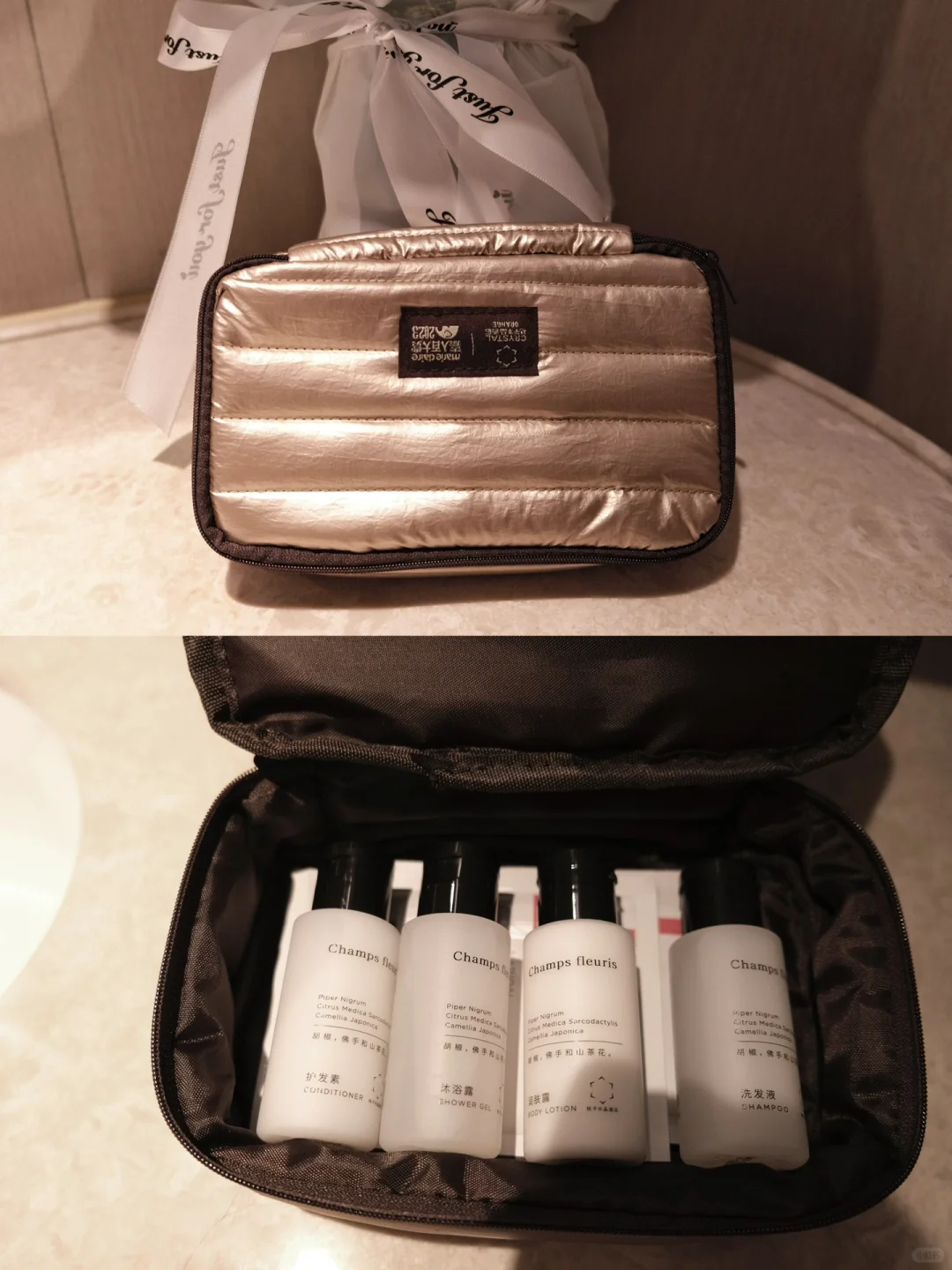 开光房入住就送的洗漱包套装直接带走!