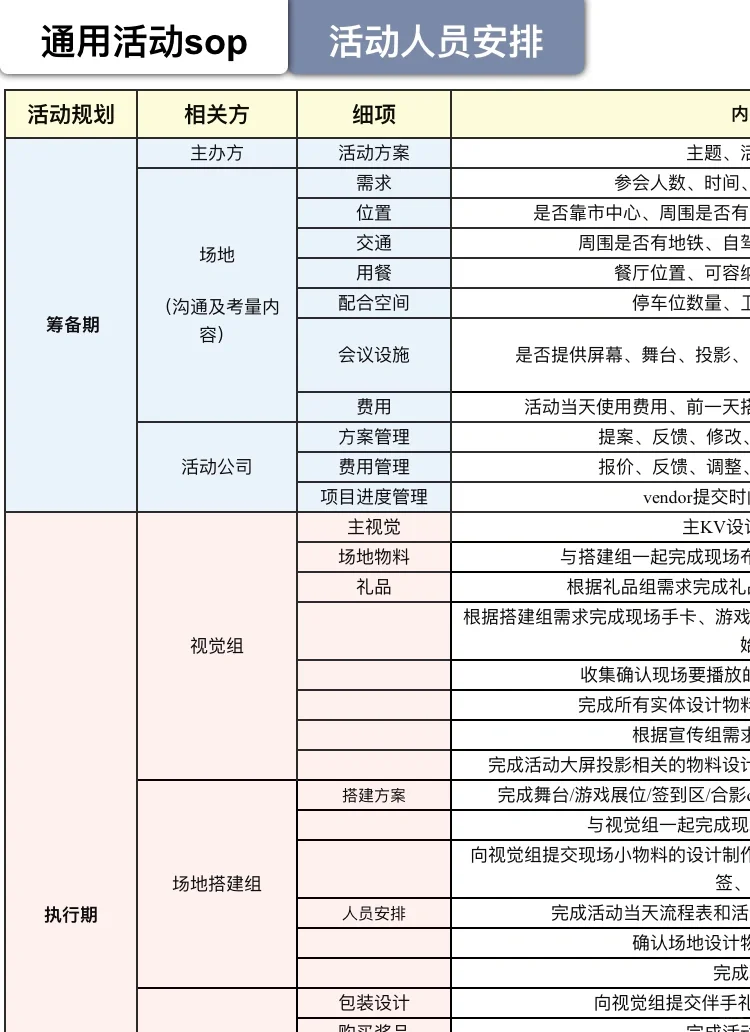 通用活动sop 人员分配sop 线上年会➕线下活动sop 工作有流程,每个环节都可以轻松安排
