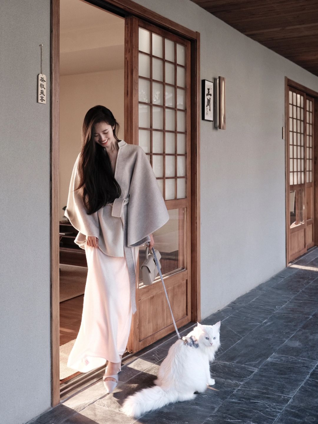 我也标题党一下~ 斗篷总带种复古书香气,温温柔柔 是我日常很爱穿的风格 这件其实是可以两面穿的,里面是灰色~