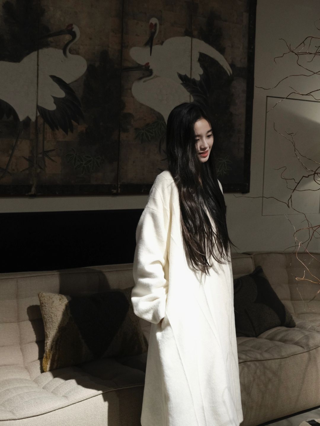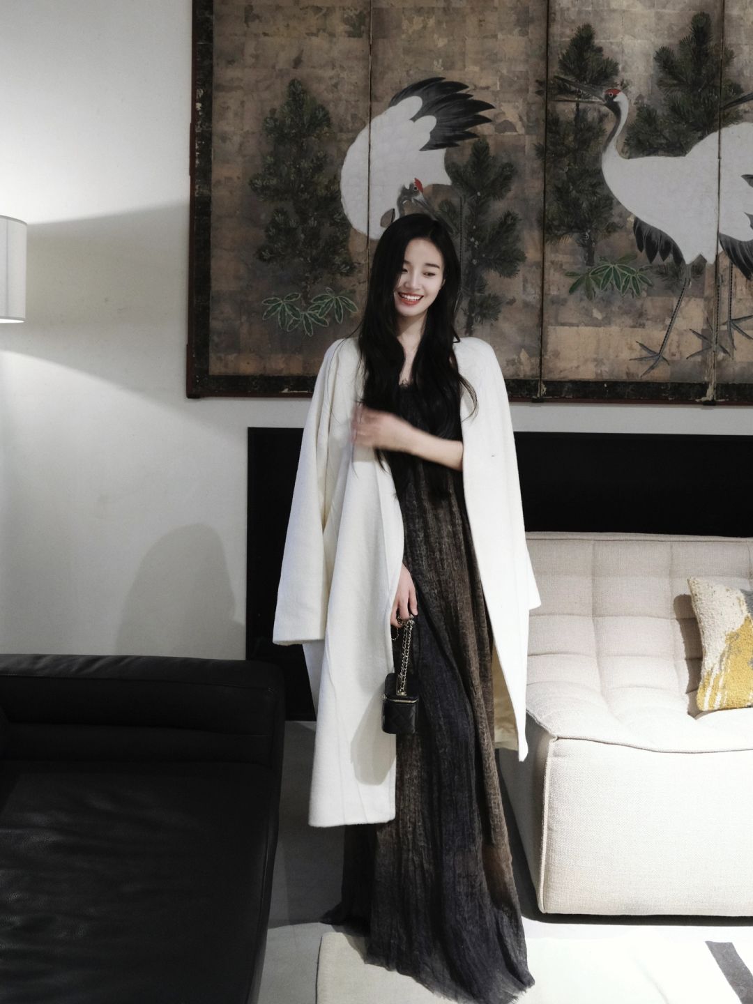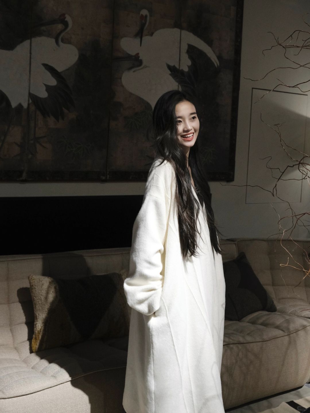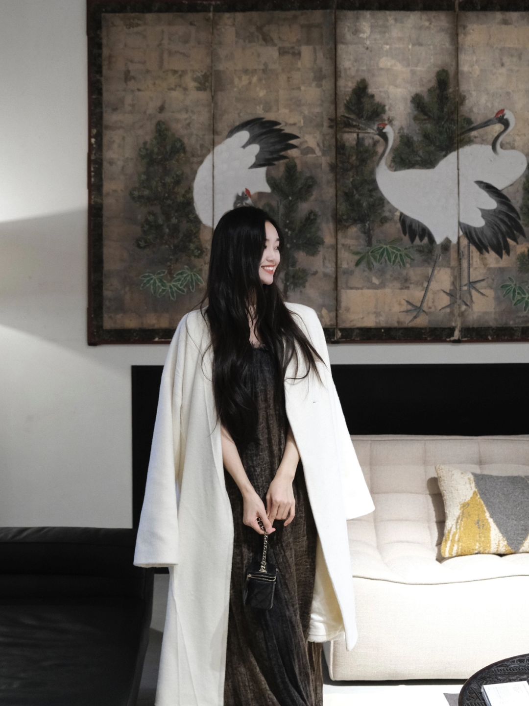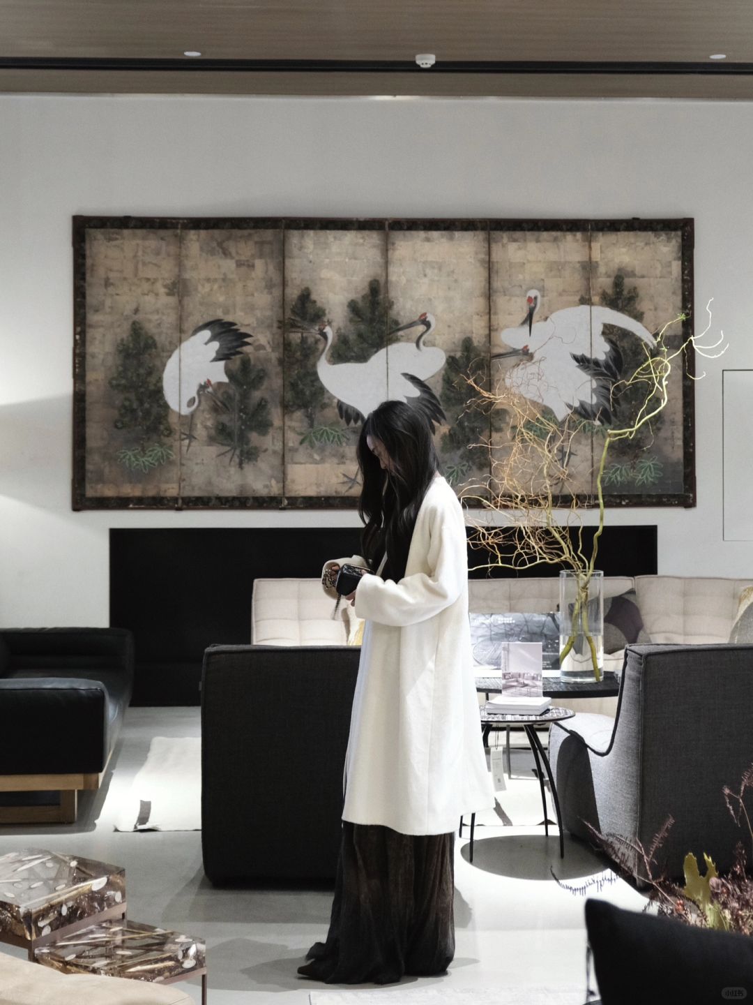 北欧表情NORHOR 三层独栋角角落落都很美 站在喜欢的壁画前挪不动脚 好喜欢这种绒面饱满洁白细腻的大衣 越穿越喜欢