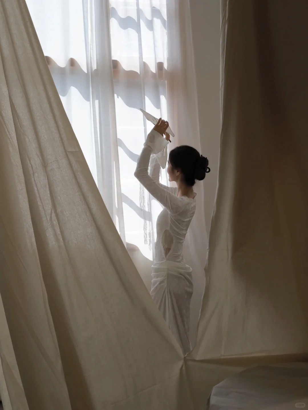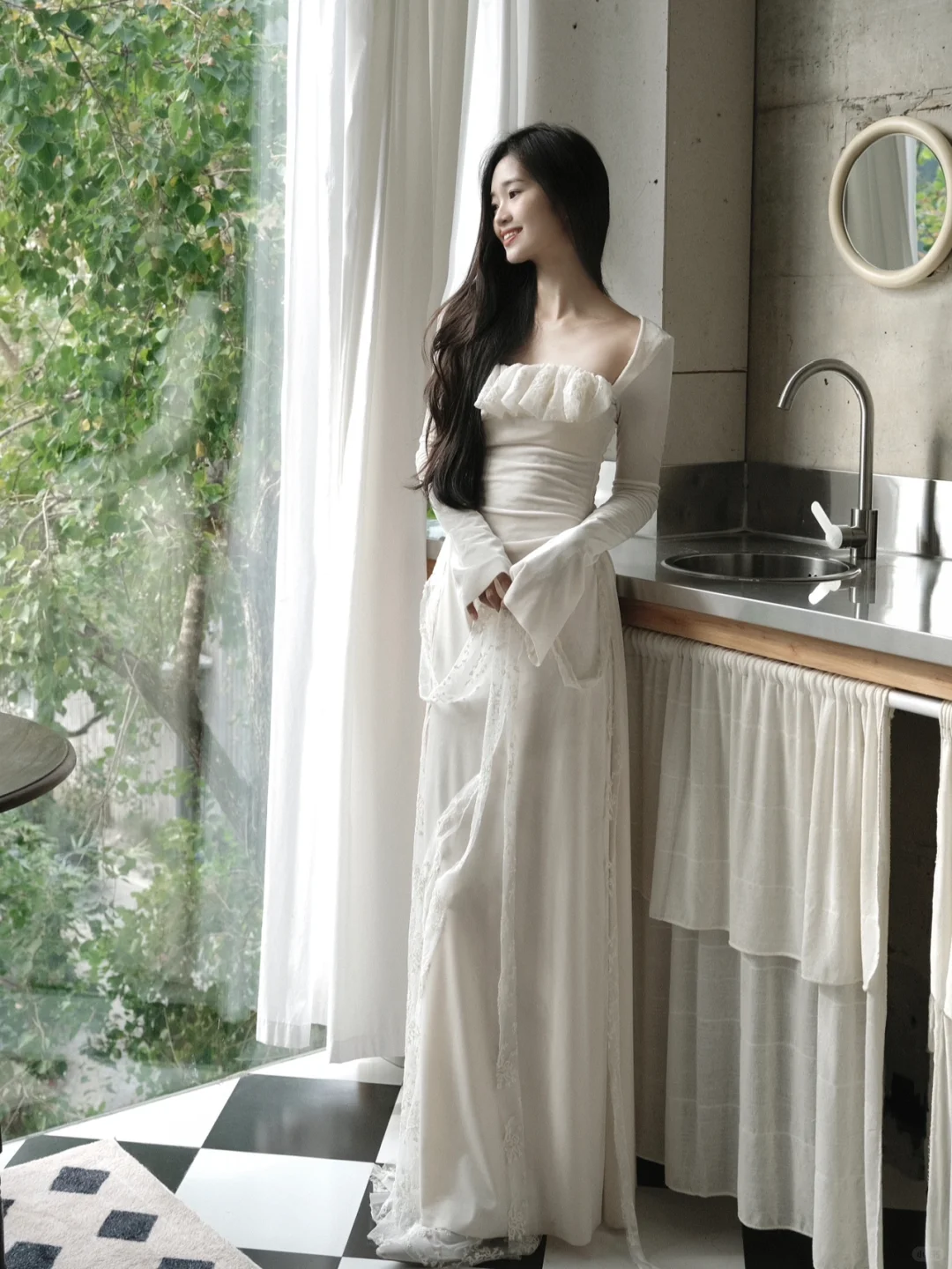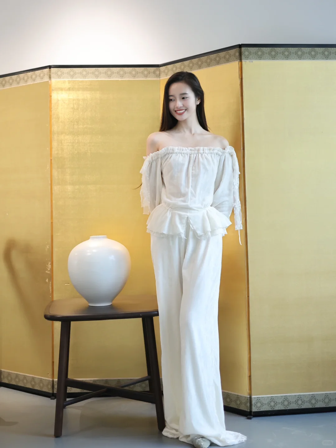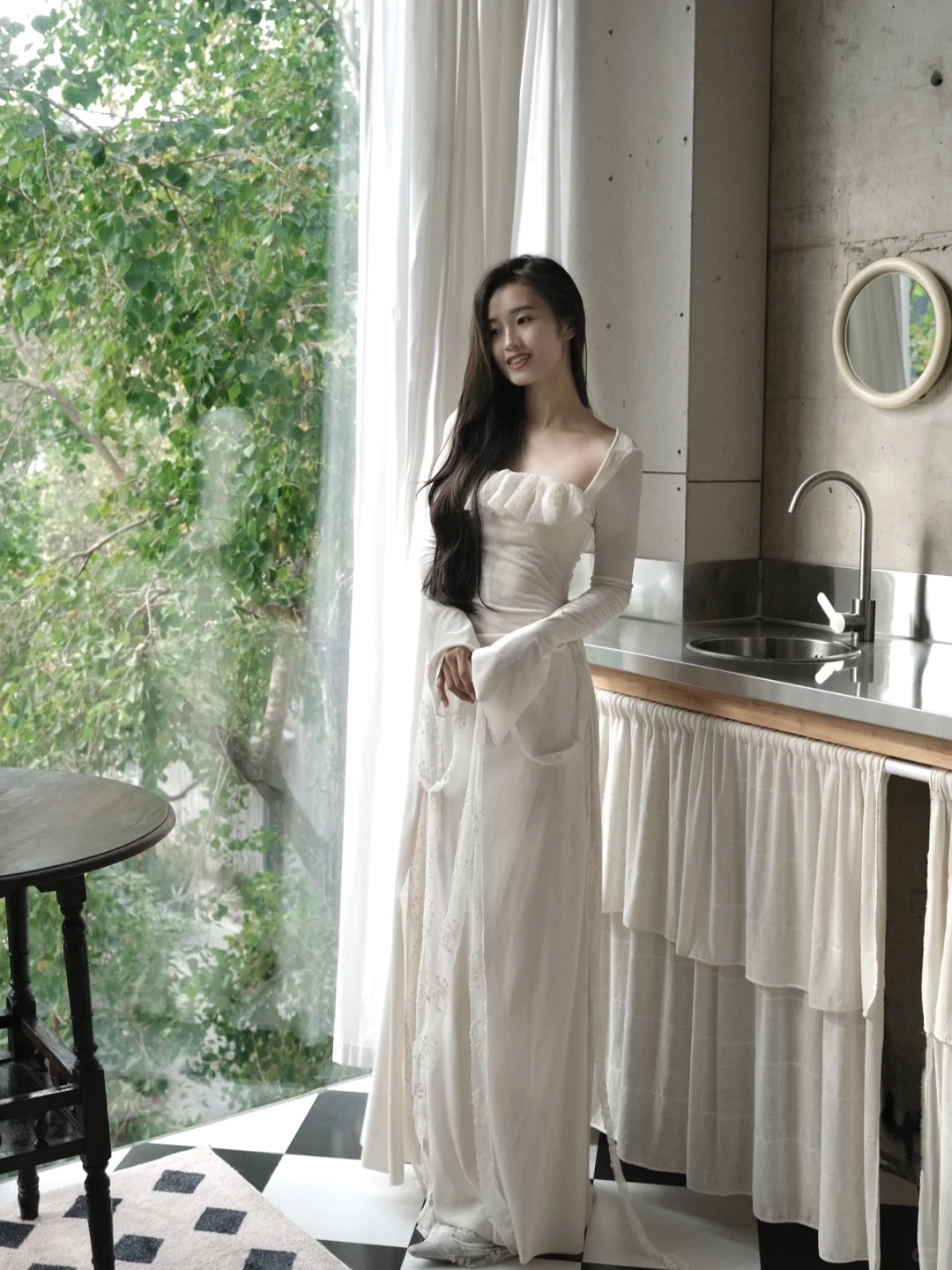 白衫是薄瓷的容器盛着心跳与呼吸绿裤是柔韧的藤缠裹着骨骼的倔强~柳丝拂